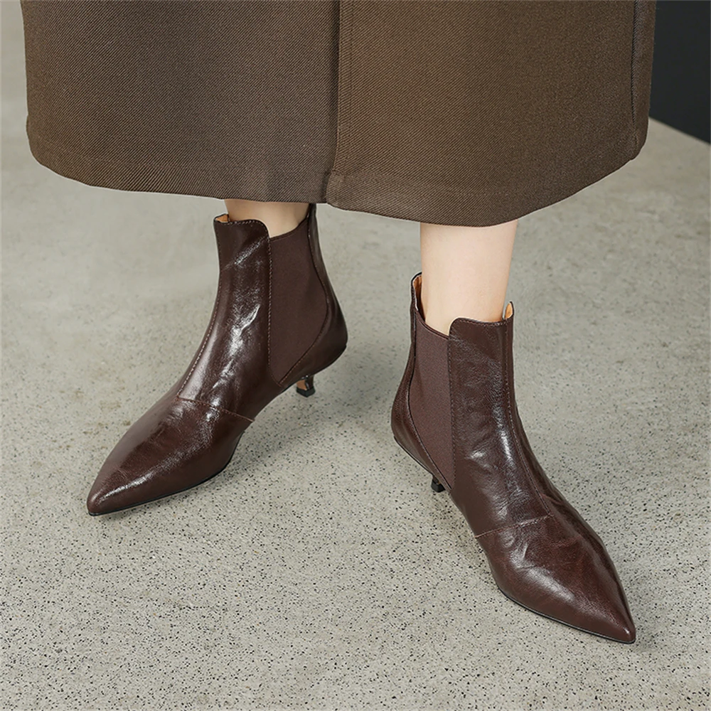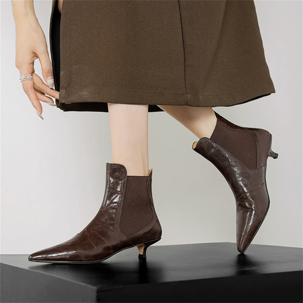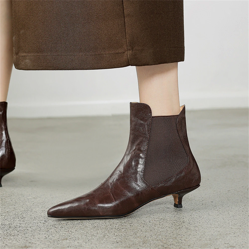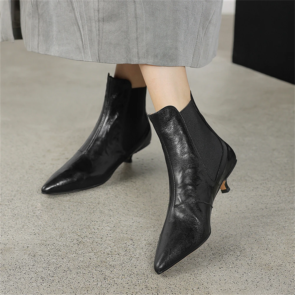 Elevate your footwear collection with these stunning Genuine Leather Pointed Toe Low Heel Boots. Designed for the modern woman, these boots combine style, comfort, and versatility, making them the perfect addition to any wardrobe. Crafted from high-quality genuine sheepskin leather, they provide a luxurious feel while ensuring durability and longevity. With their pointed toe and thin heel, these boots are ideal for both casual outings and elegant occasions.