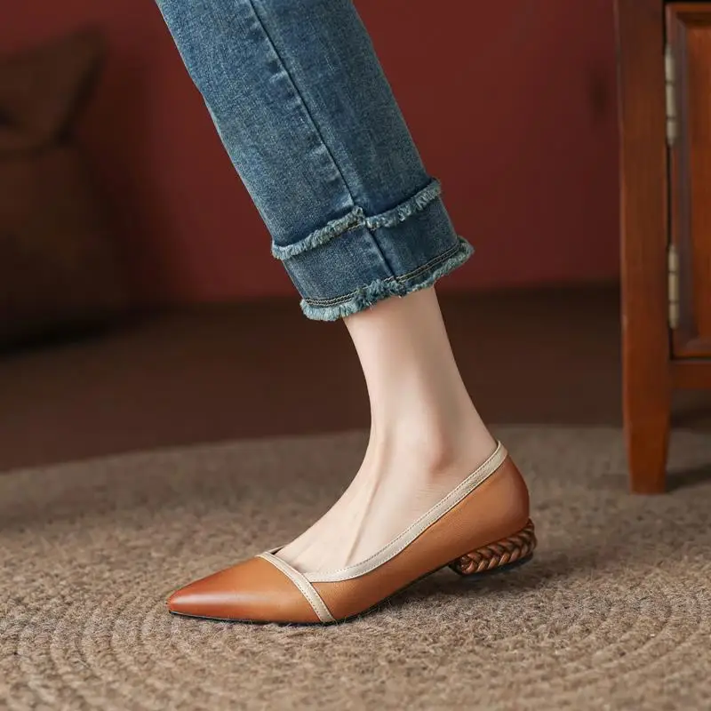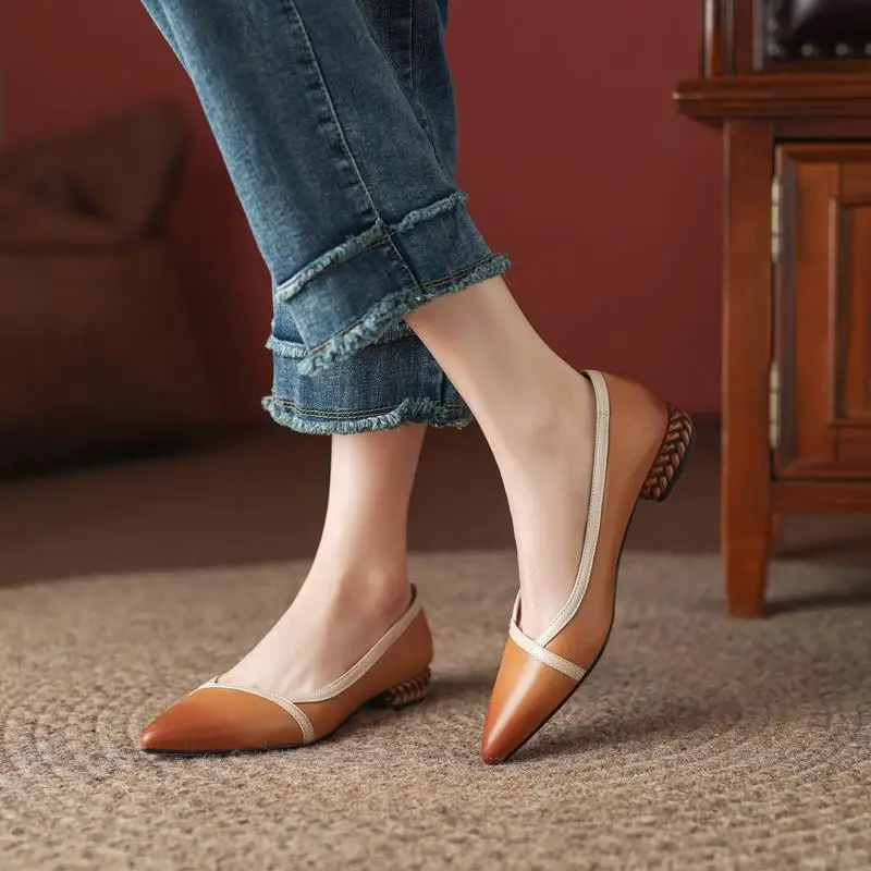 Discover the Elegance of Genuine Leather Pointed Toe Low Heel Pumps