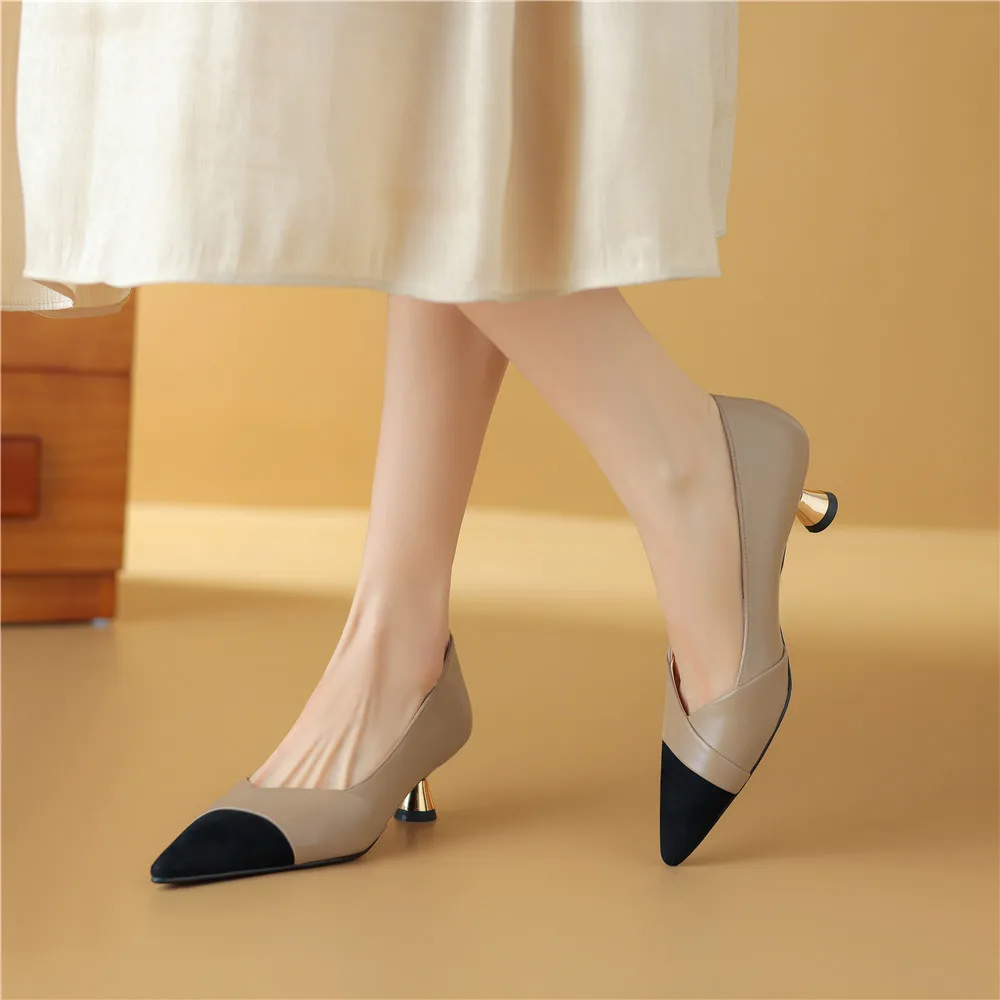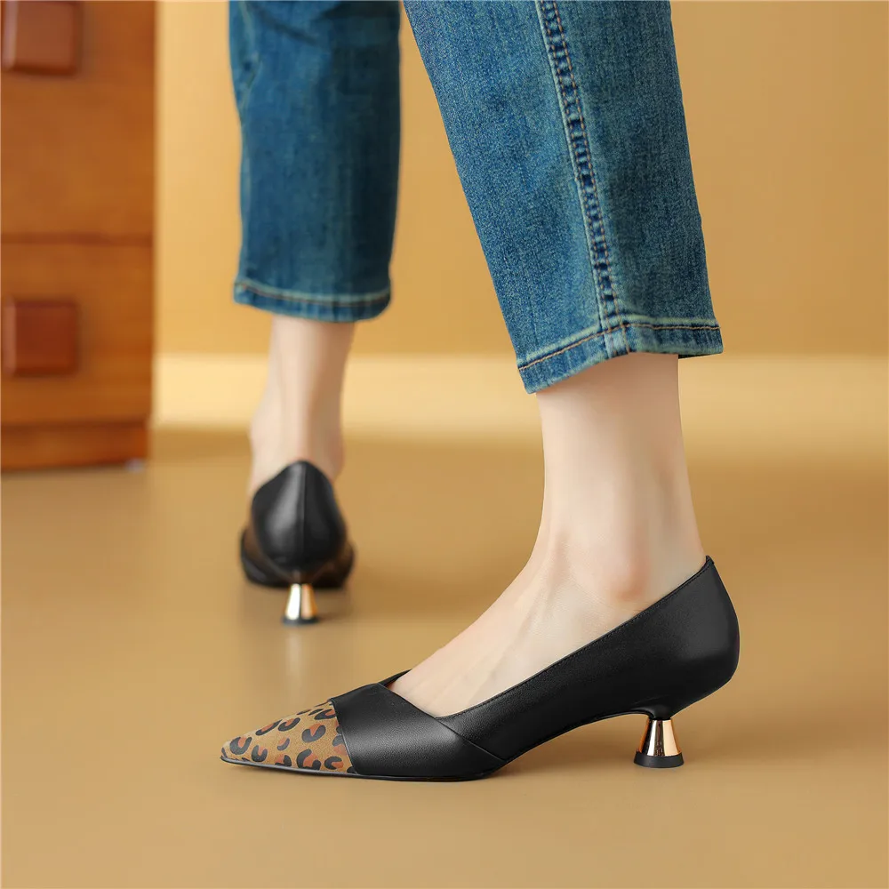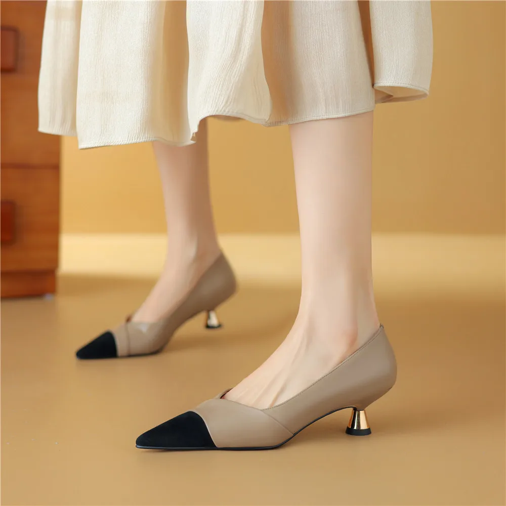 Step into Elegance with Our Genuine Leather Pointed Toe Thin Heels Pumps