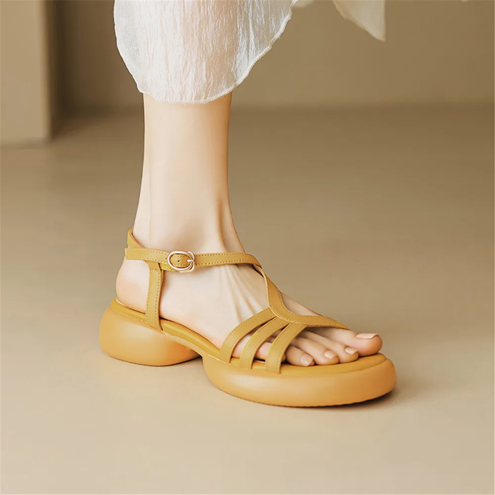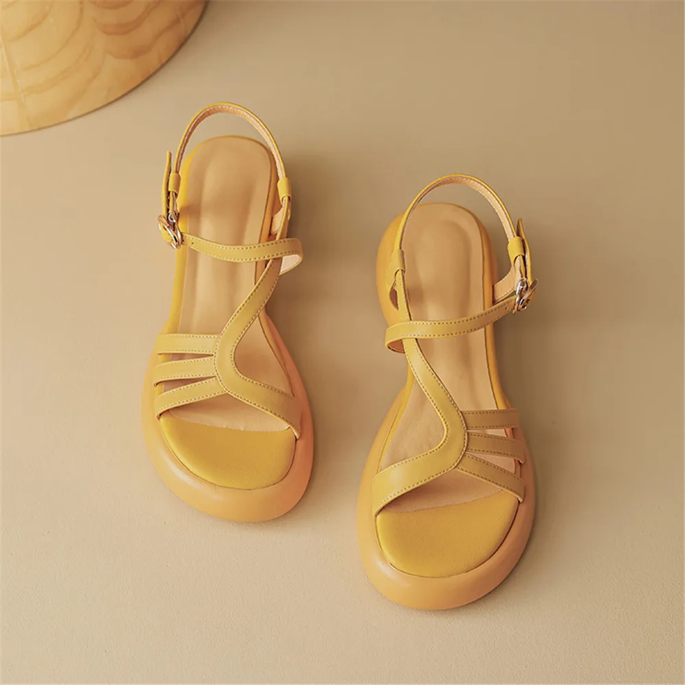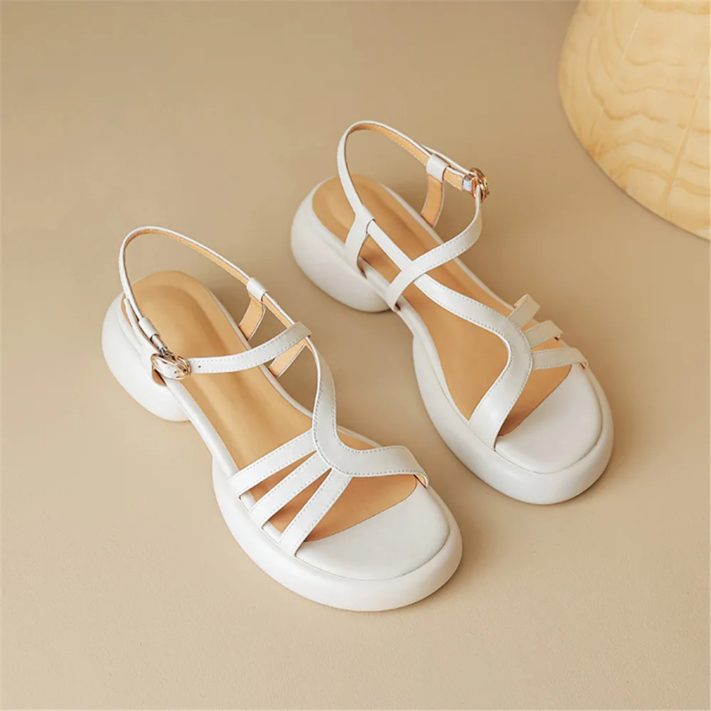 Step into summer with style and comfort with our Genuine Leather Round Heel Sandals. Designed for the modern woman, these sandals blend elegance and practicality, making them the perfect choice for casual outings or leisurely strolls. Crafted from high-quality genuine cow leather, they offer both durability and a luxurious feel, ensuring you look and feel your best all season long.