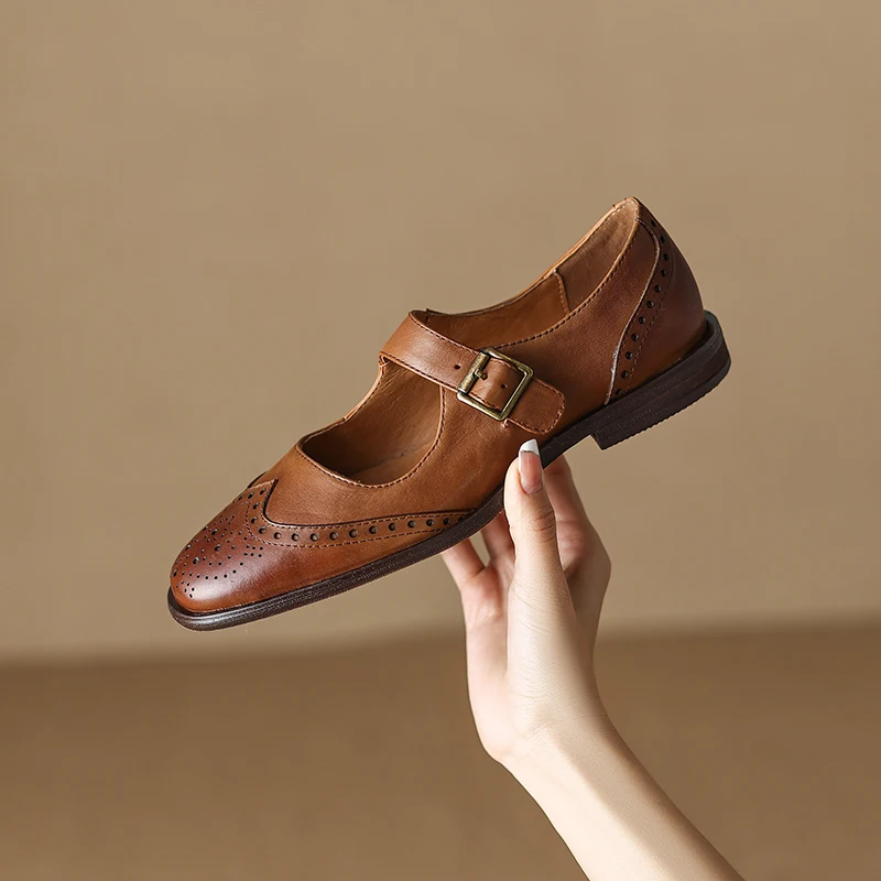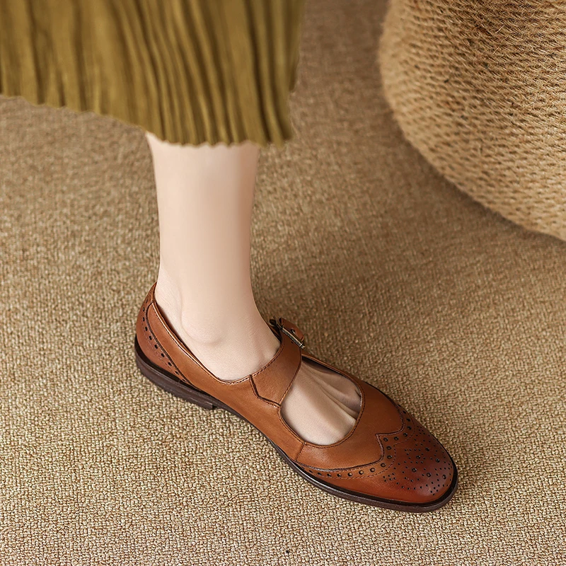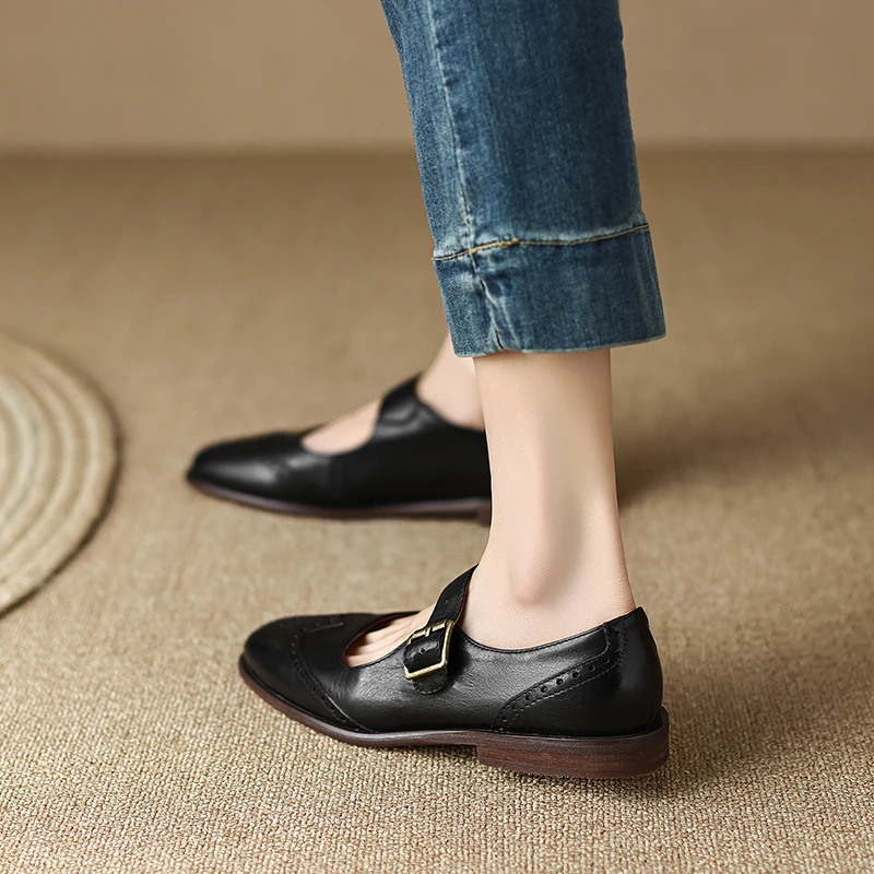 Discover the Elegance of Genuine Leather Round Toe Chunky Heel Pumps