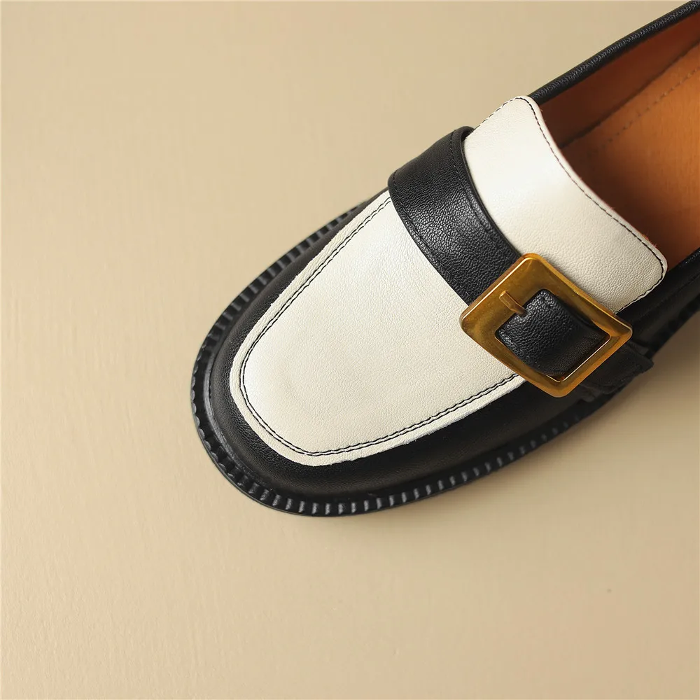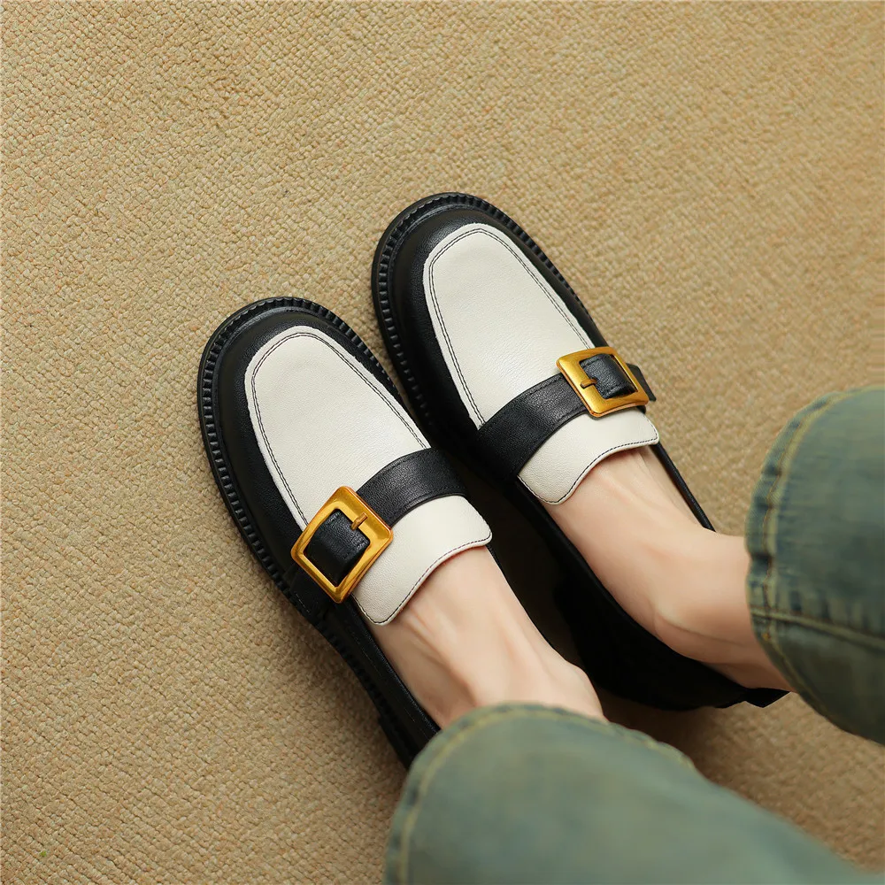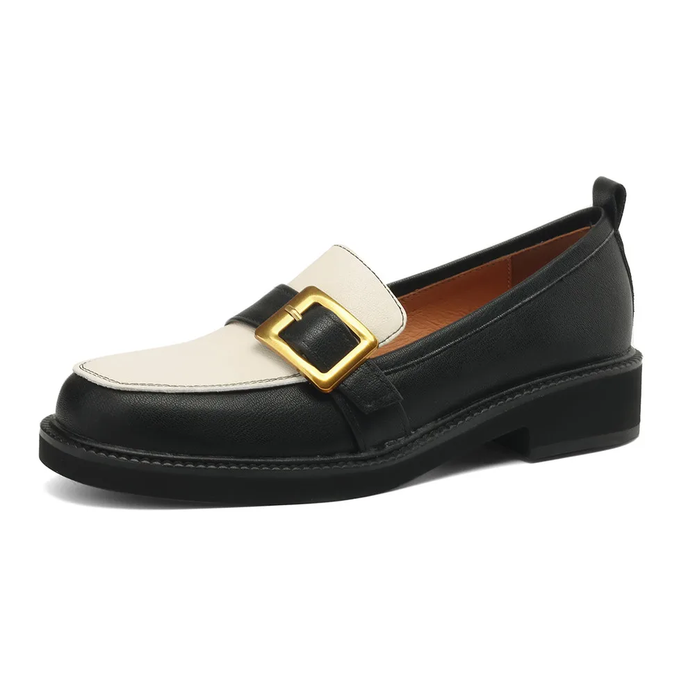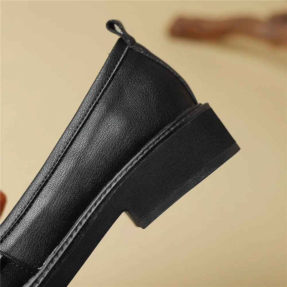 Discover Elegance with Genuine Leather Round Toe Low Heel Pumps
