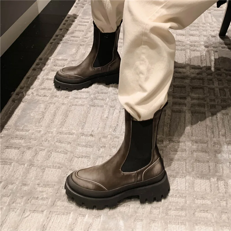Genuine leather slip on ankle boots mixed colors chelsea style platform winter boots