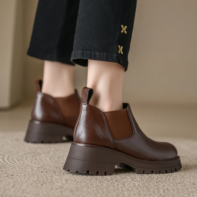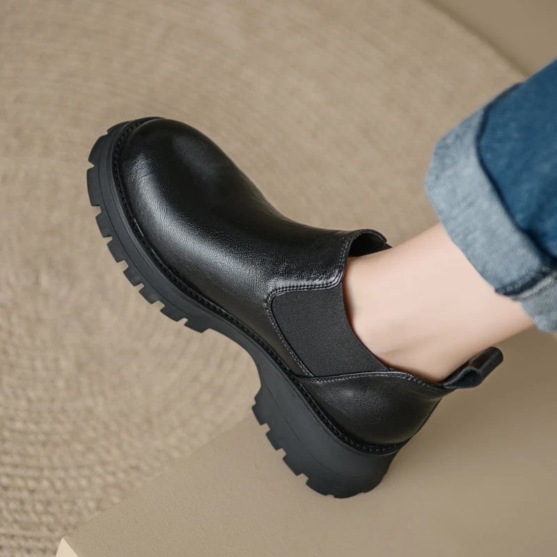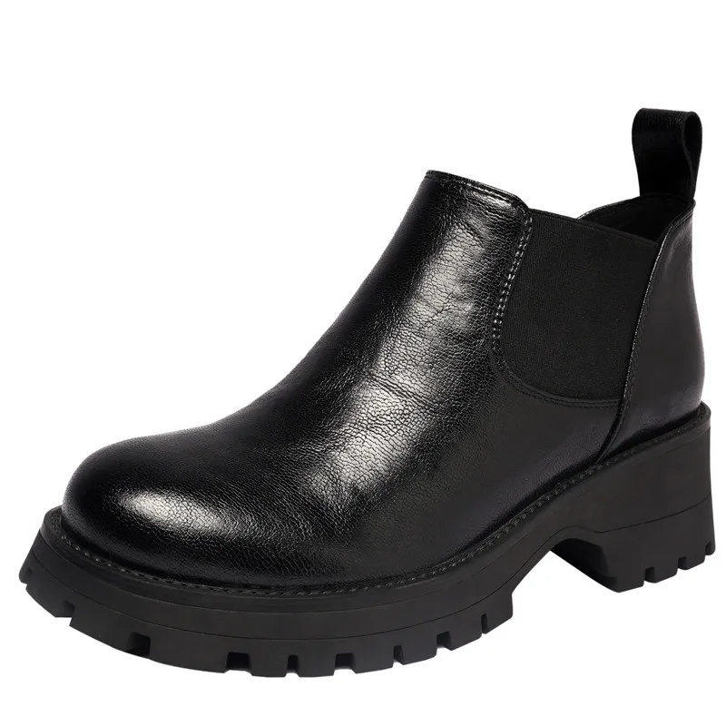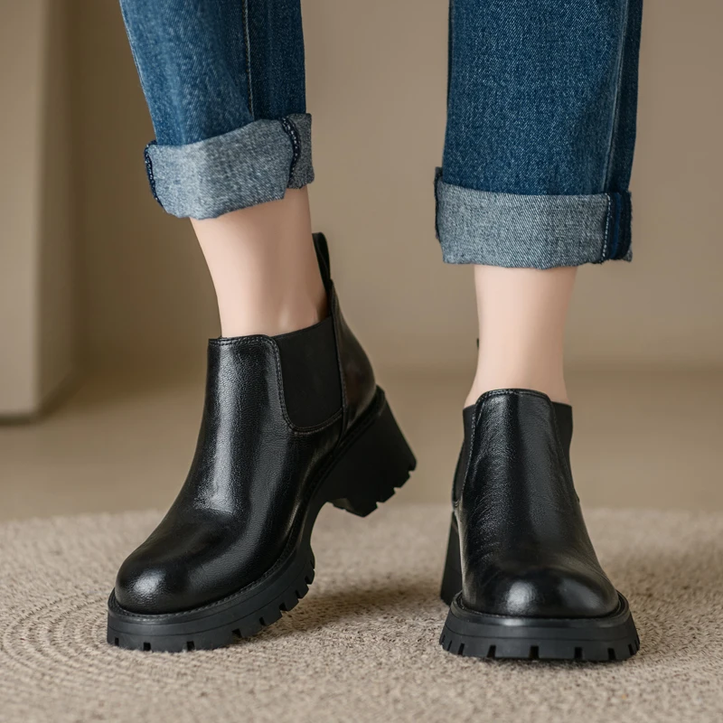 Genuine leather slip on chelsea boots with high heels