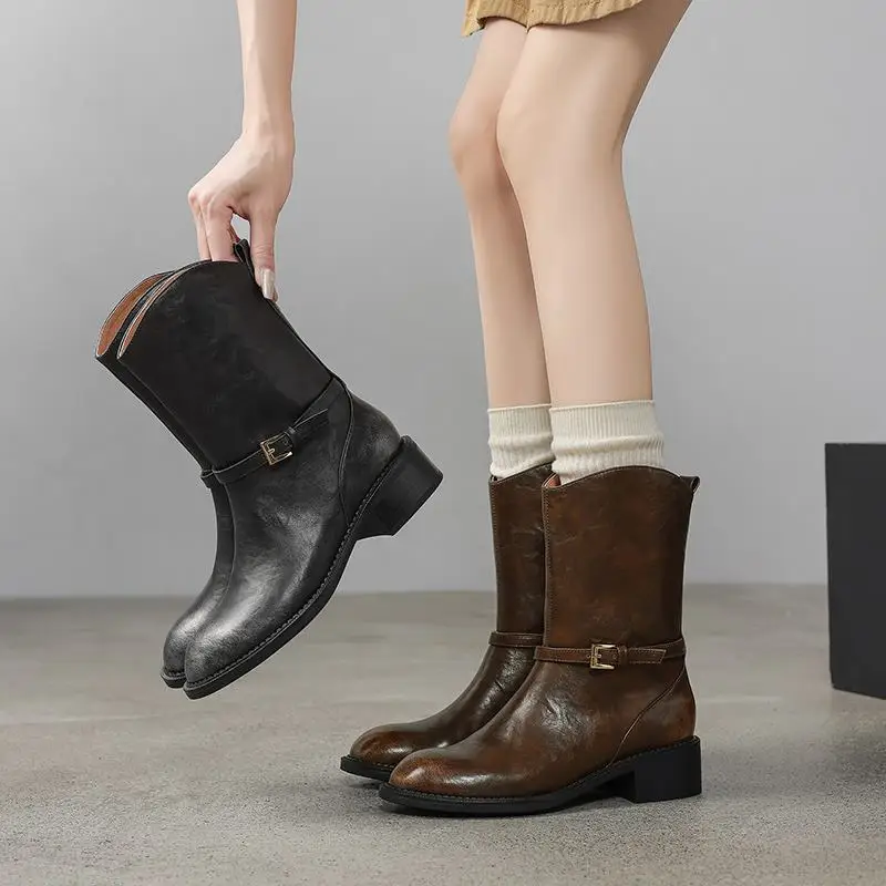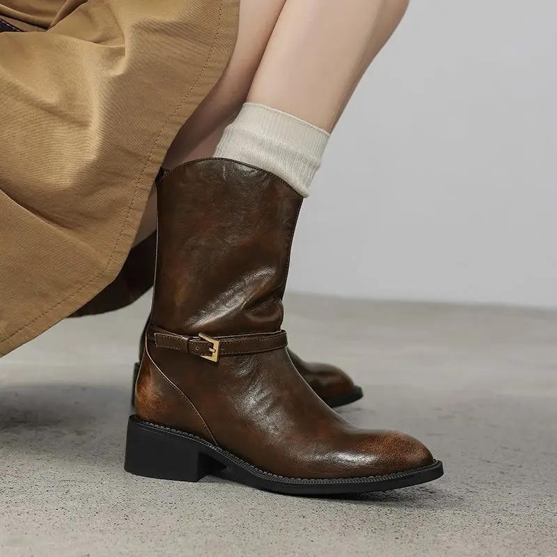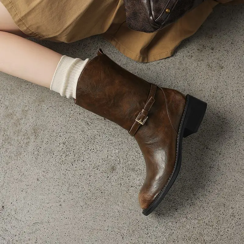 - Stylish Design: The retro style with a square heel and buckle detail makes these boots versatile enough to pair with any outfit, from casual jeans to elegant dresses.