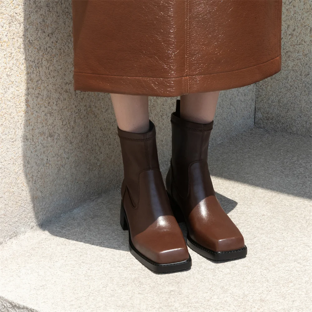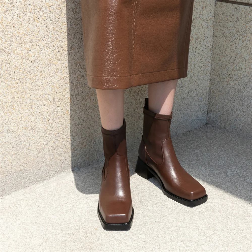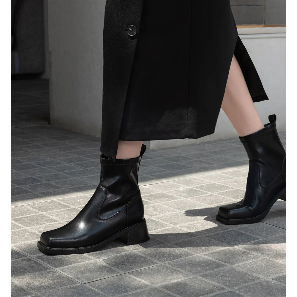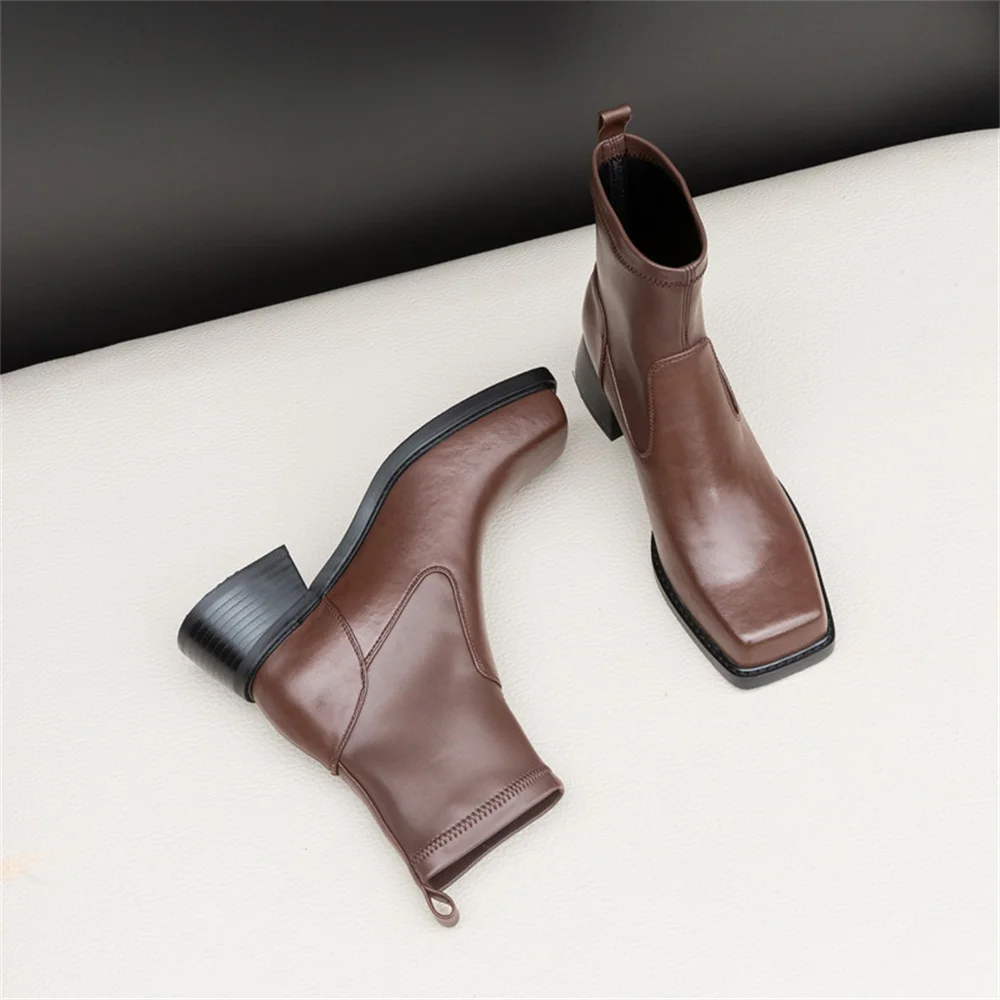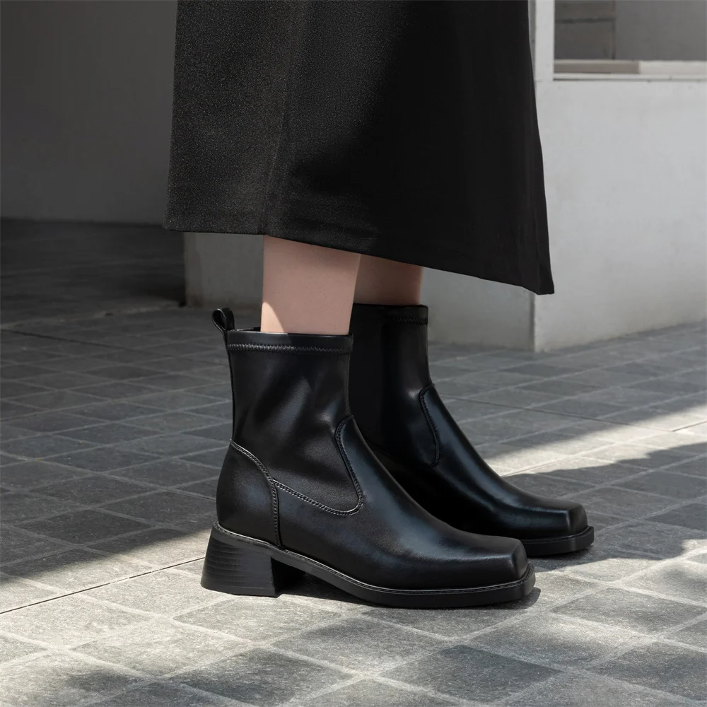 Discover the Elegance of Genuine Leather Square Toe Ankle Boots