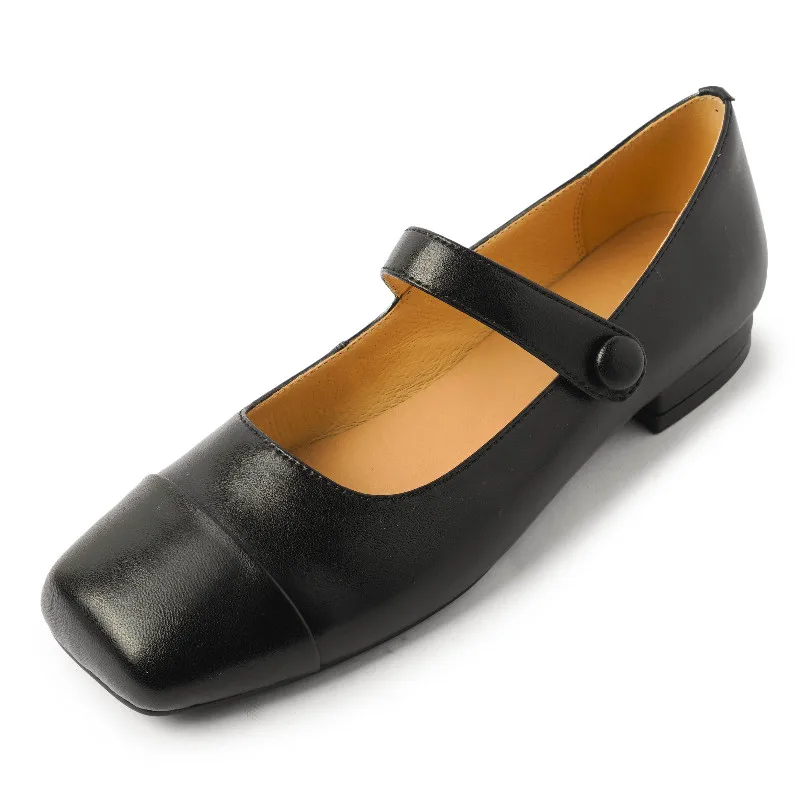 Genuine leather square toe low heels mary jane pumps