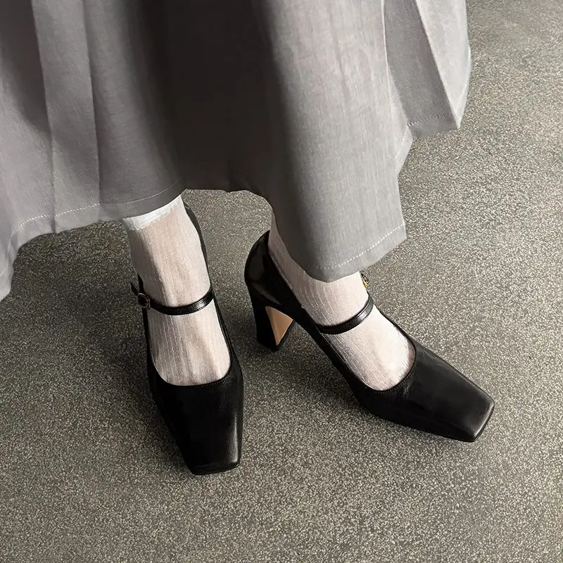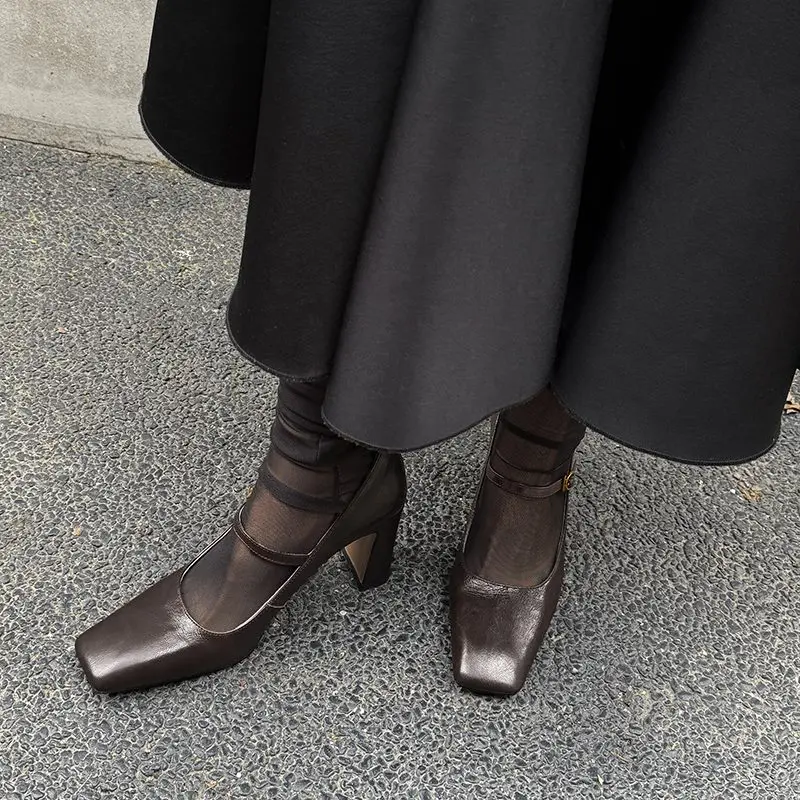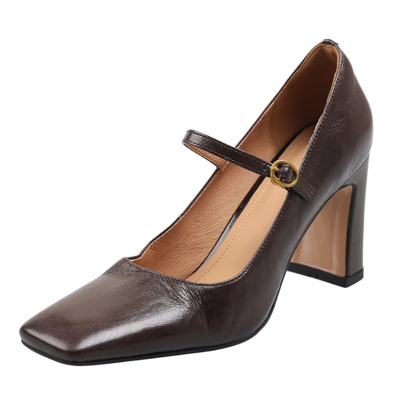 Discover the Elegance of Genuine Leather Square Toe Mary Jane High Heels