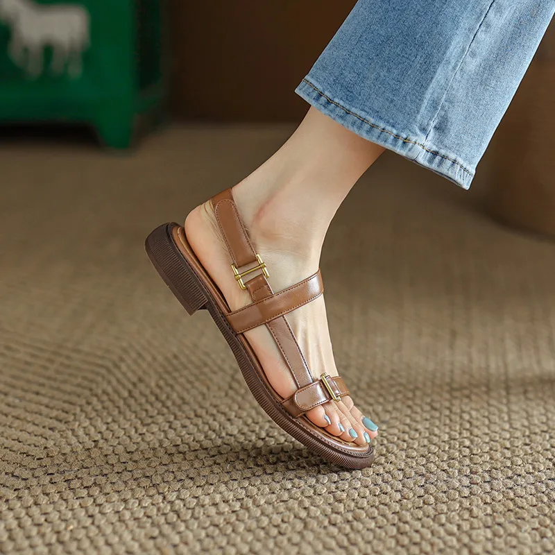 Step into summer with style and ease with our Genuine Leather Summer Sandals featuring exquisite metal decorations and a comfortable low heel design. Perfect for casual outings, these sandals are crafted to elevate your wardrobe while ensuring all-day comfort. The combination of high-quality materials and thoughtful design makes these sandals a must-have for any fashion-forward individual.