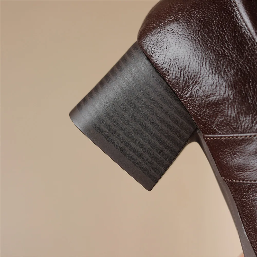 Elevate Your Office Style with Our Genuine Leather Thick Heel Square Toe Pumps