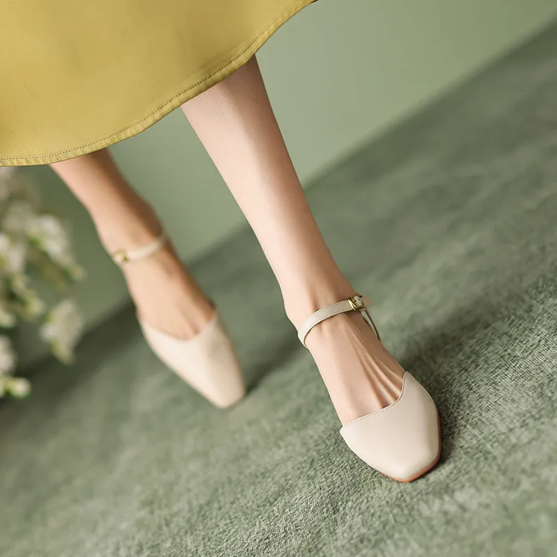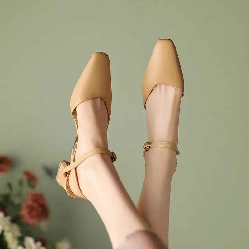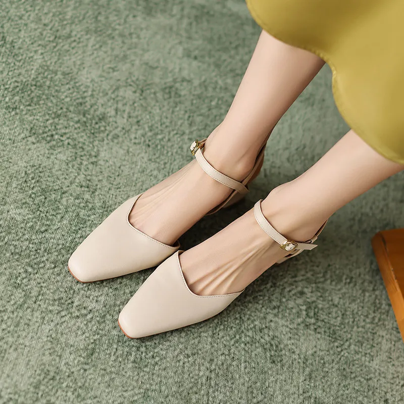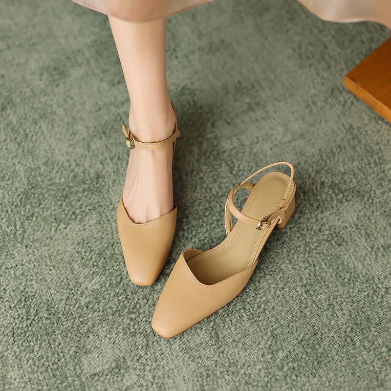 Discover the Elegance of Genuine Leather Thick Heels Casual Sandals