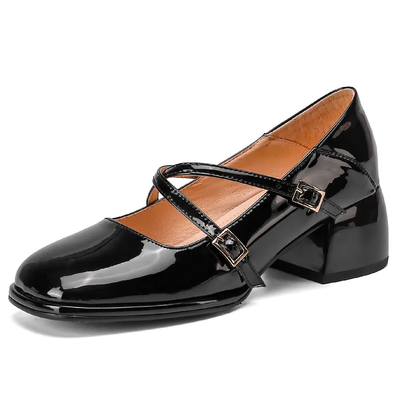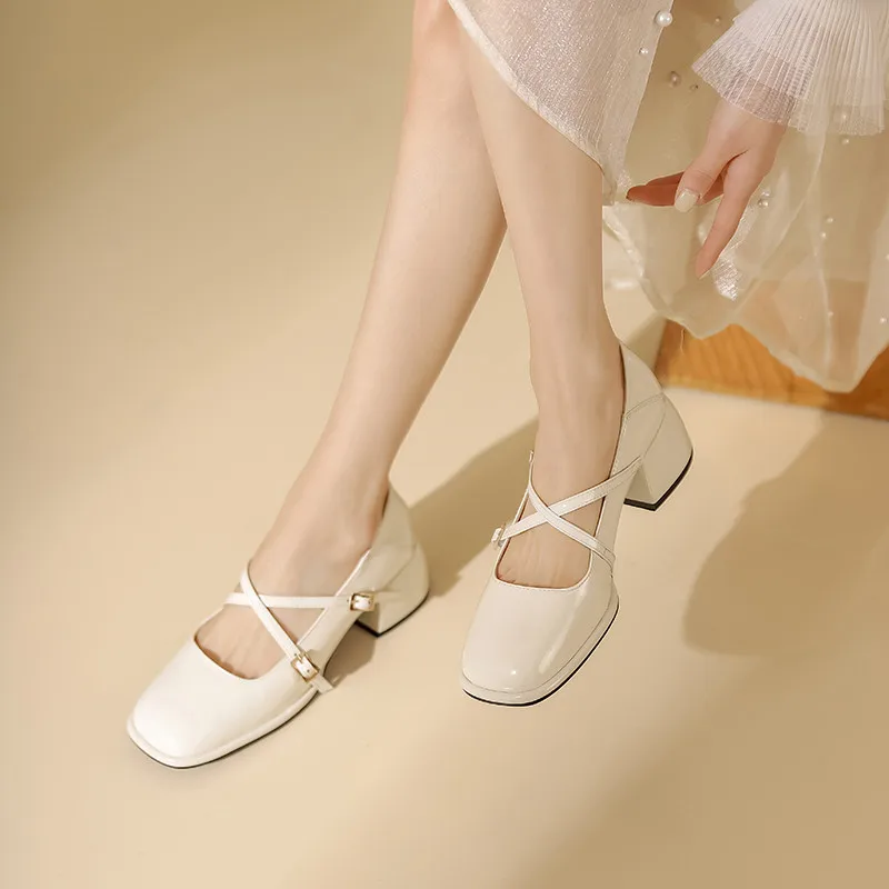 Discover the Elegance of Genuine Leather Thick Heels Cross-Tied Mary Janes