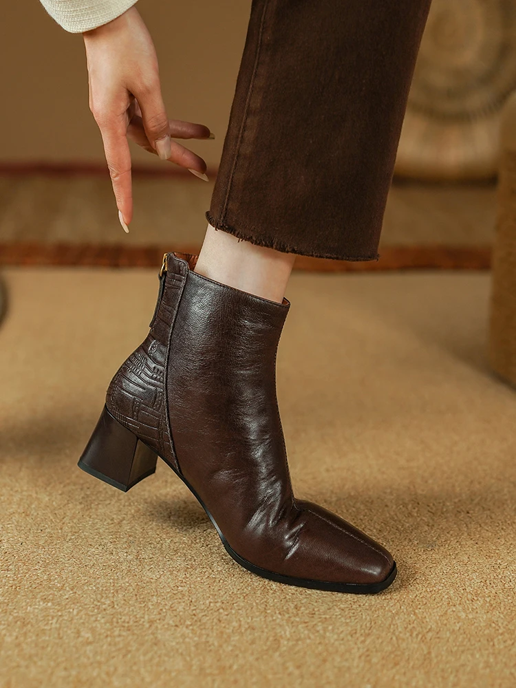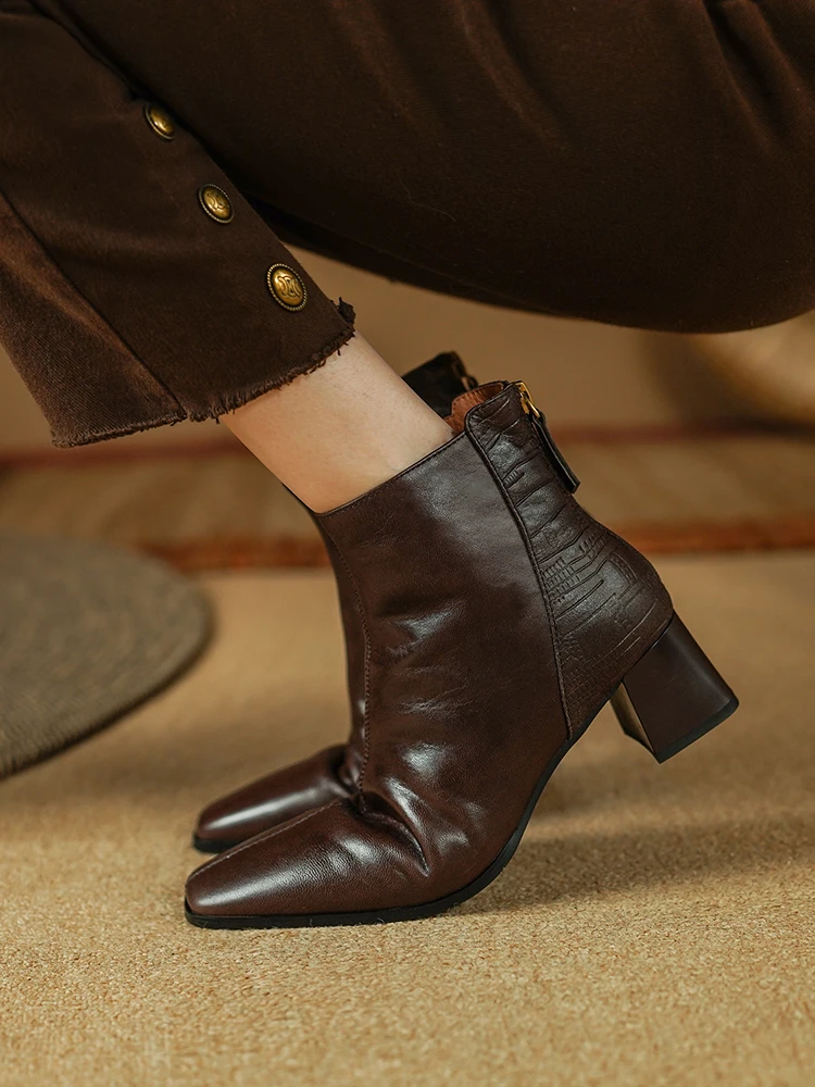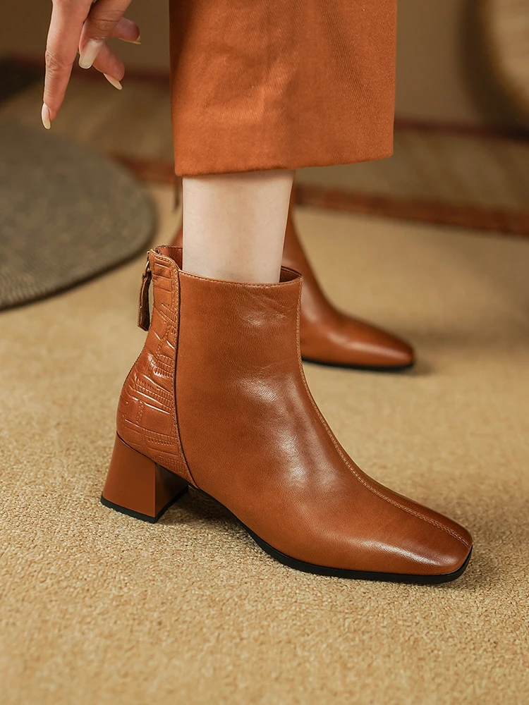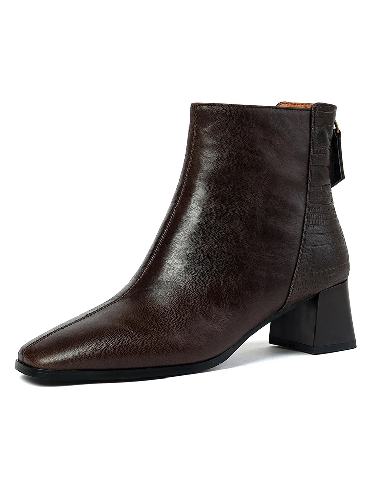 - Fashion Elements: Splicing, Thick Heel, Square Toe, Zipper