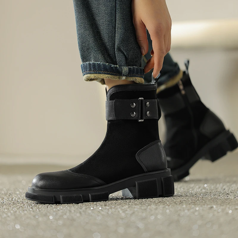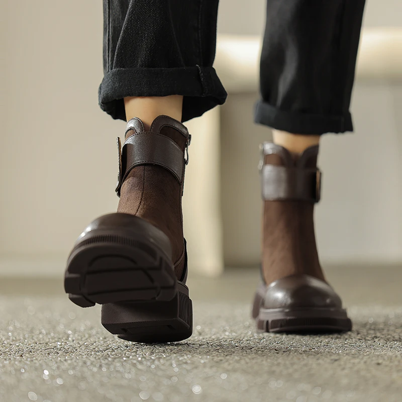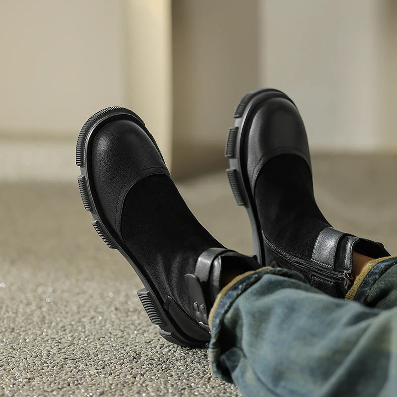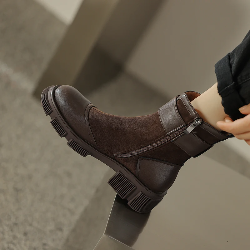 Discover the Elegance of Genuine Leather Zipper Platform Ankle Boots