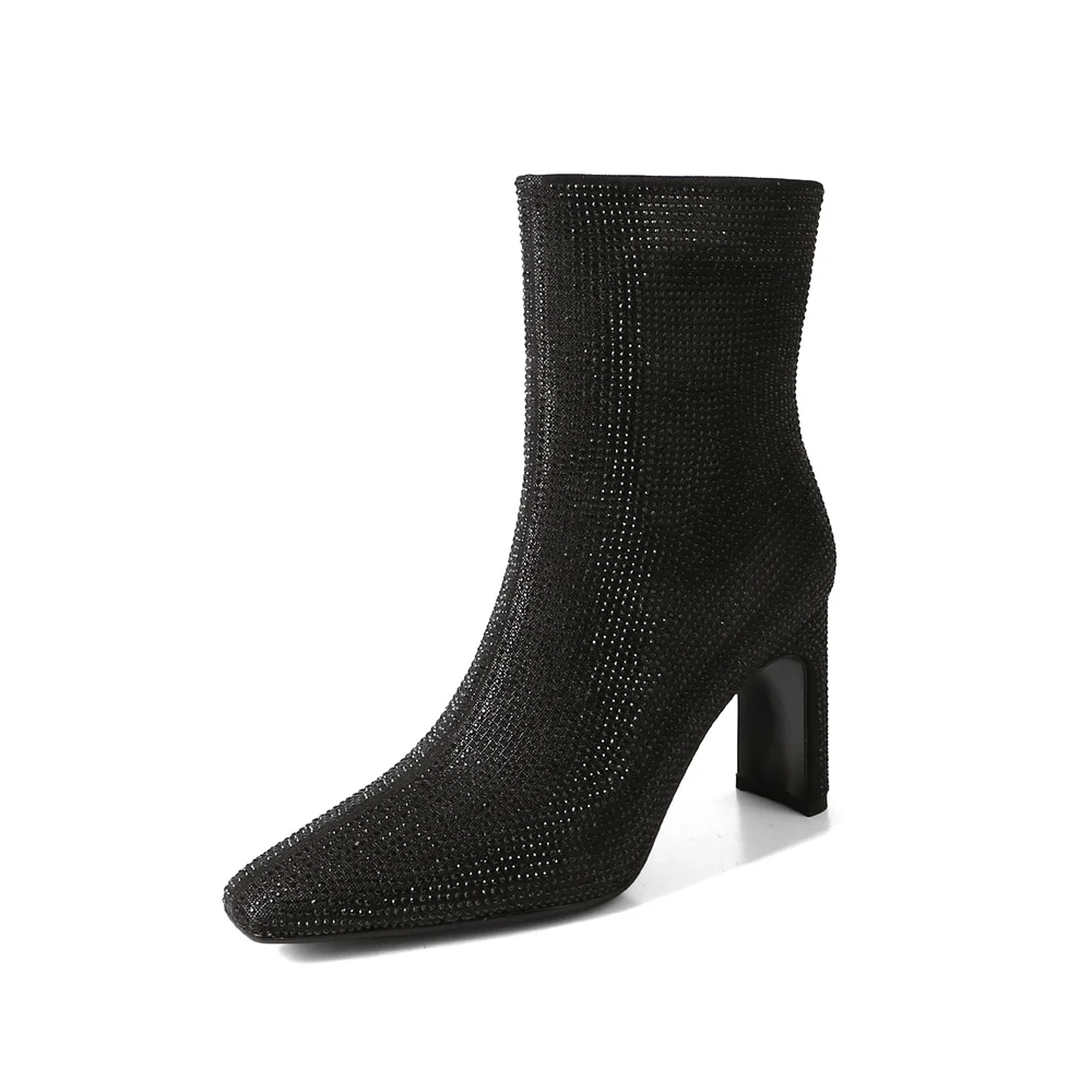 Glitter high heel ankle boots with rhinestones