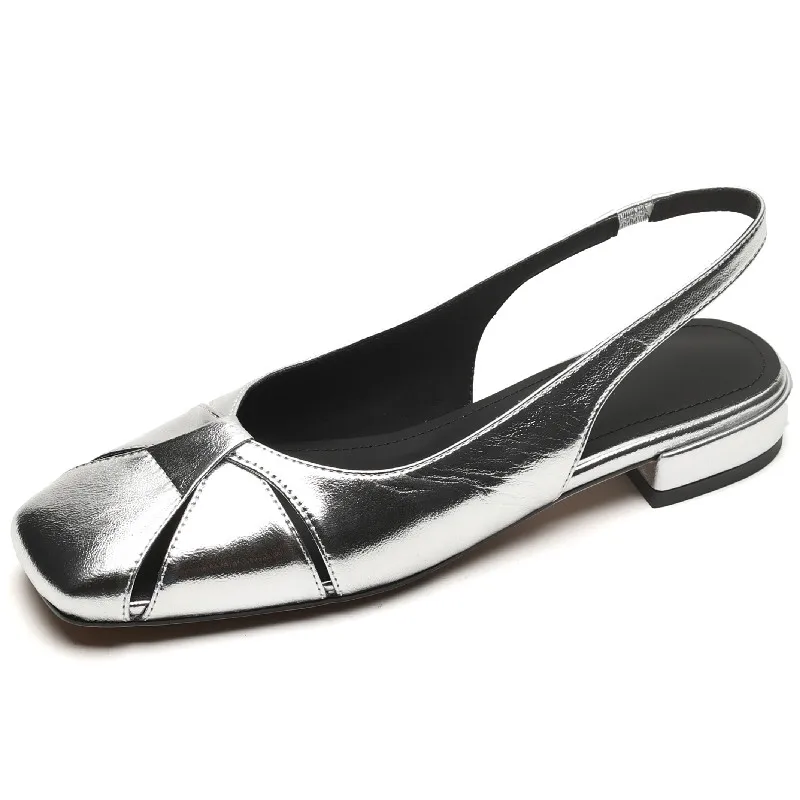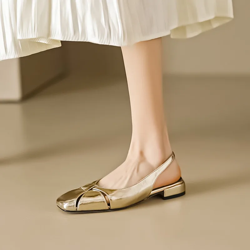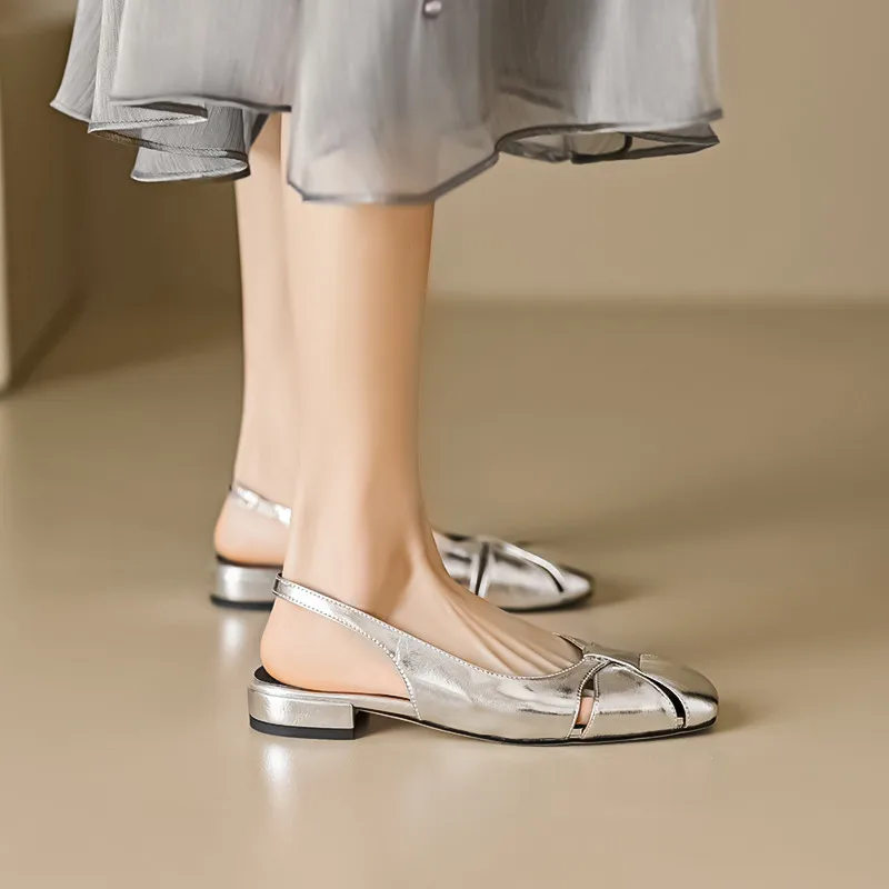 Discover the Elegance of Our Hollow Leather Slingback Sandals with Low Heels