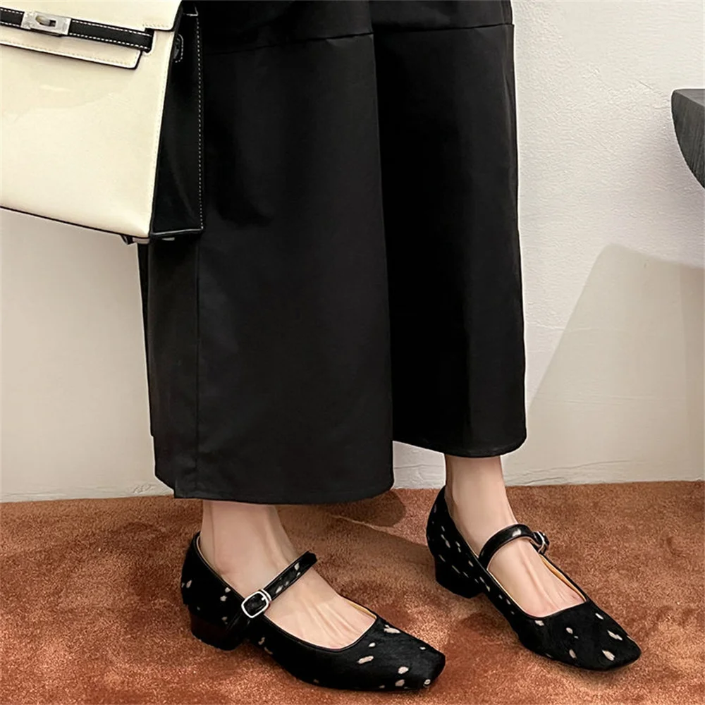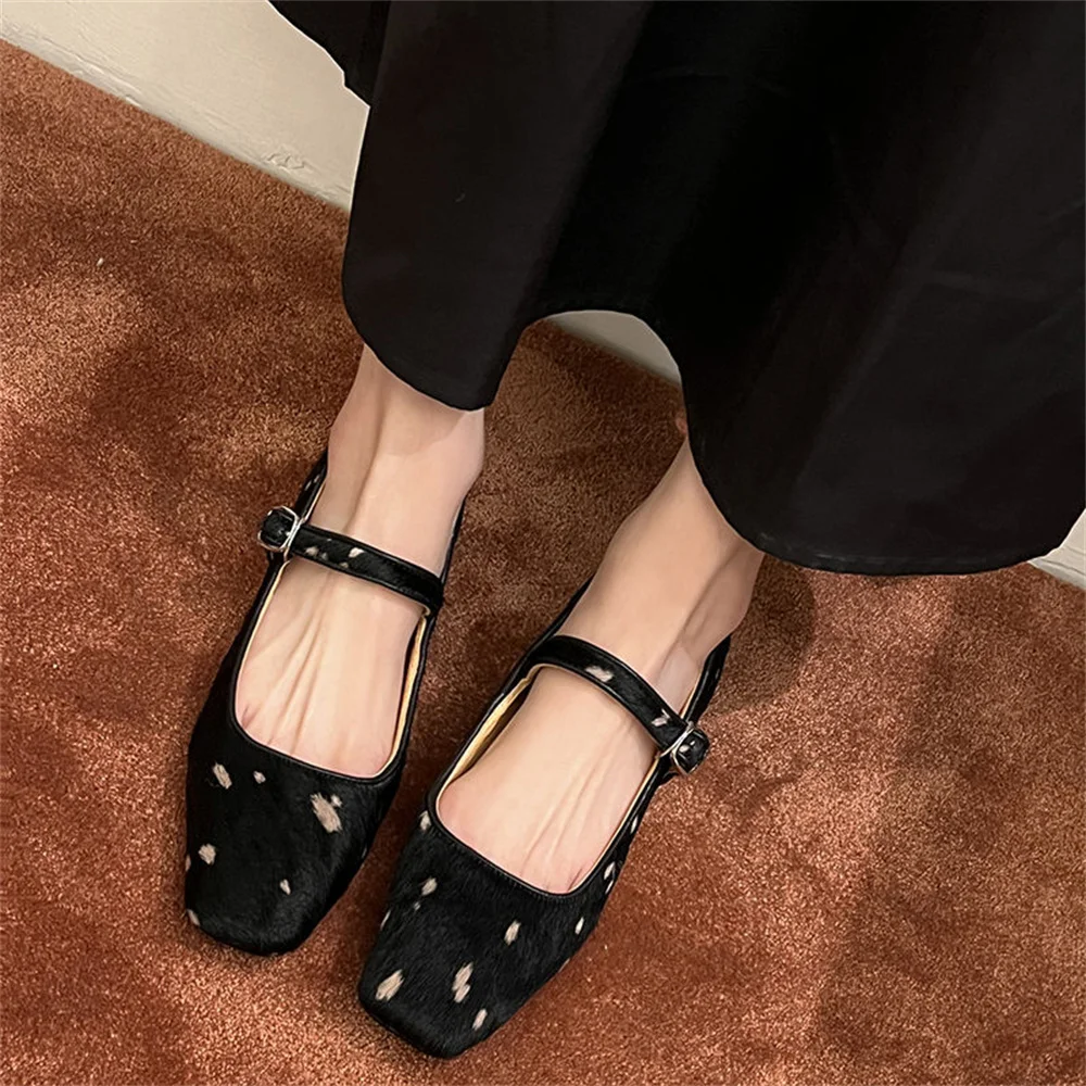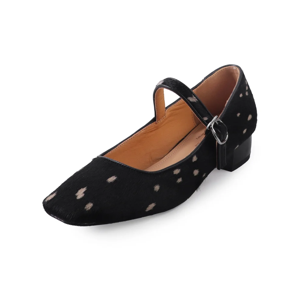 Horsehair low heels pumps with buckle for office wear