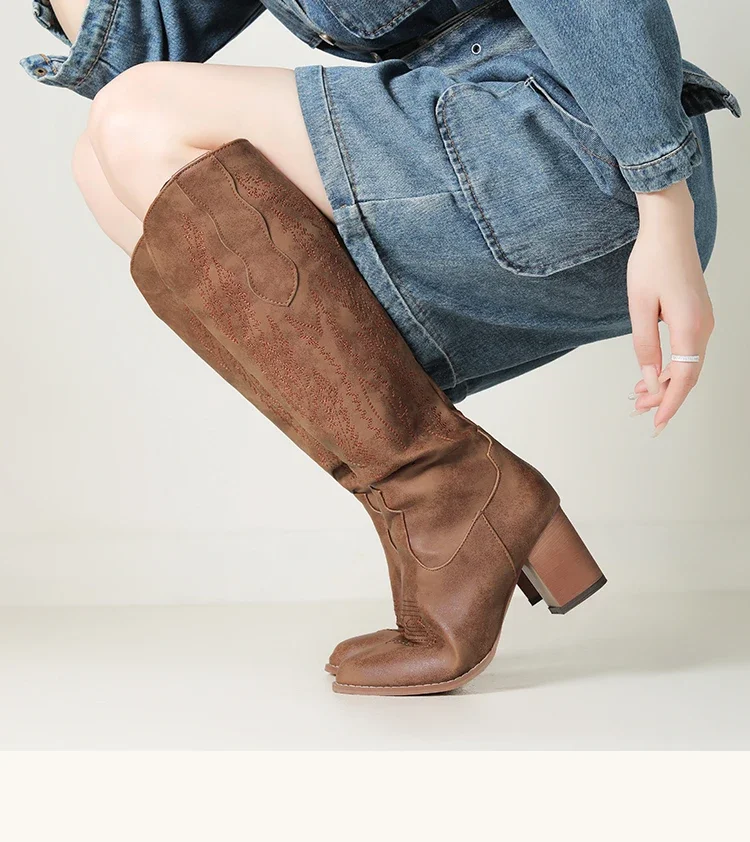 Knee-high embossed pu western boots
