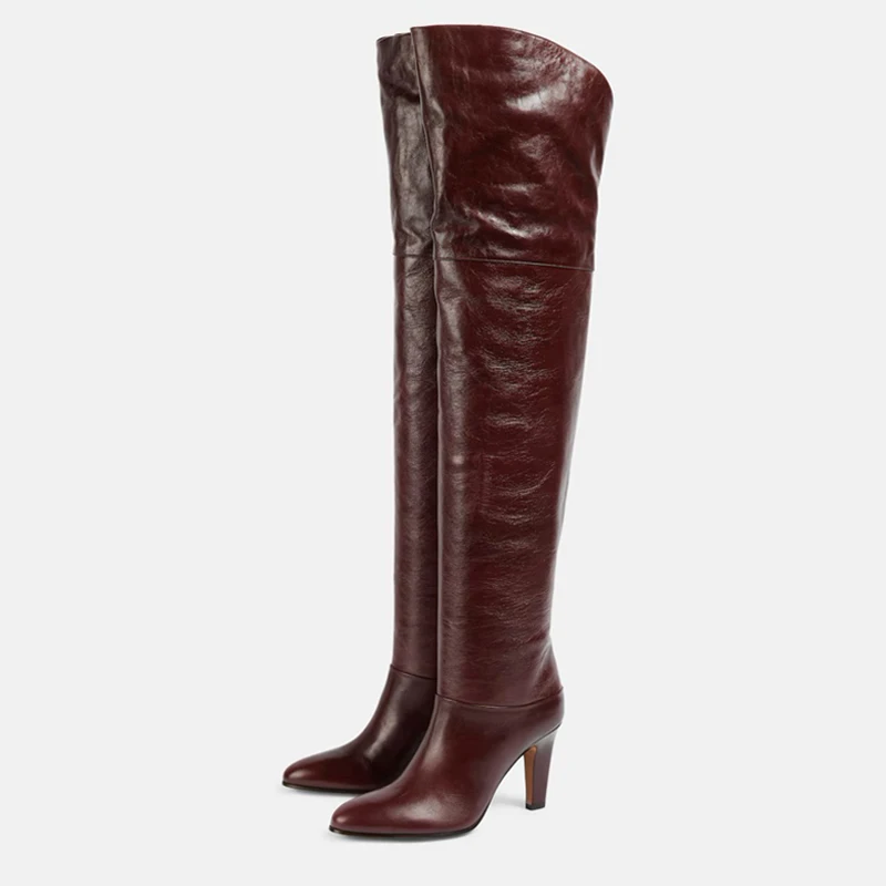 Knee High Genuine Leather Boots with High Heels