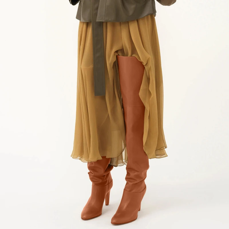 Knee high genuine leather boots with high heels