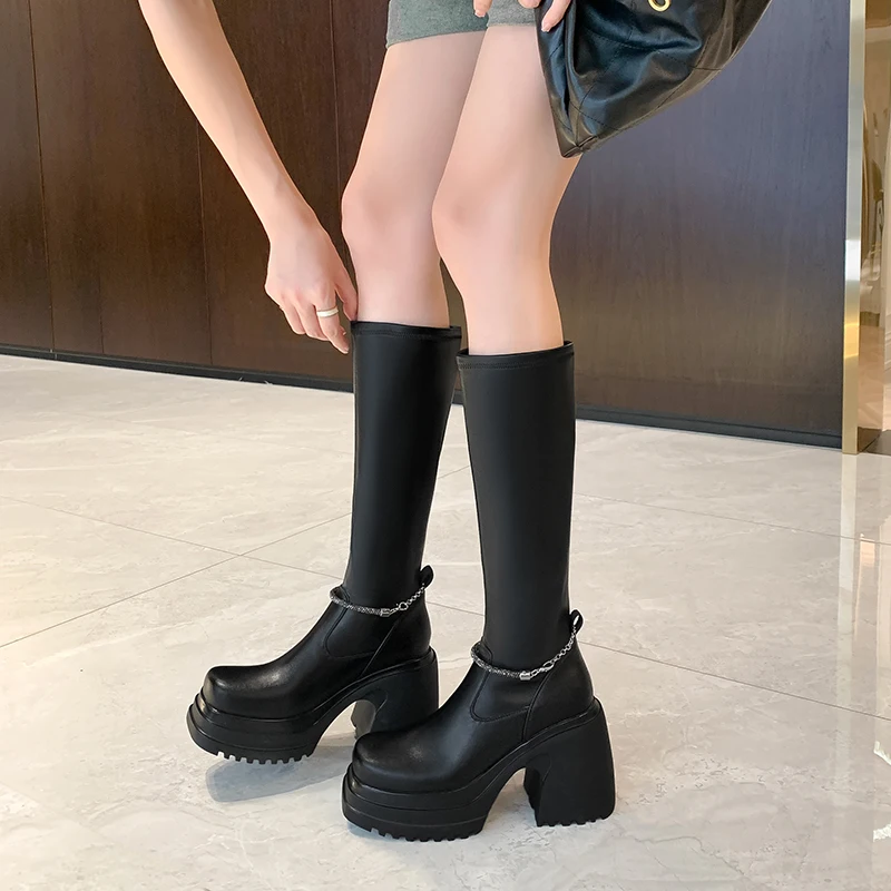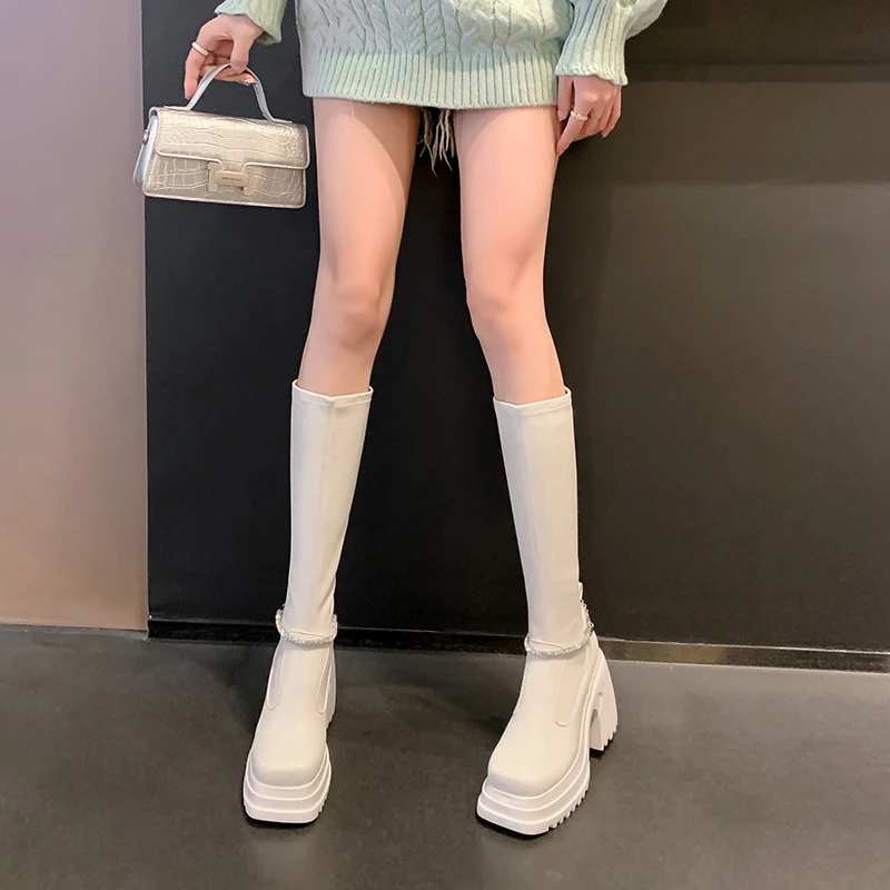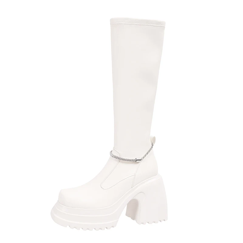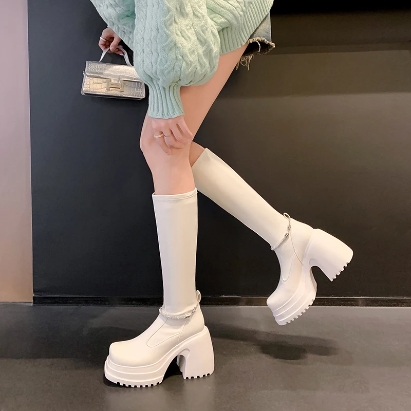 Elevate your footwear collection with our stunning Knee High Platform Boots in Black and Beige. Designed for the modern woman who values both style and comfort, these boots are the perfect addition to your autumn and winter wardrobe. With a chic punk aesthetic, they effortlessly combine edgy flair with practical features, making them suitable for a variety of occasions.