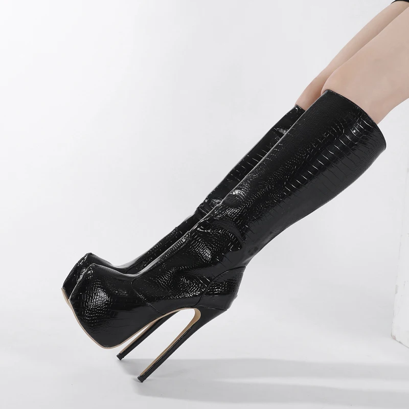 A: The heel height is super high, measuring 8cm or more. - Q: Can I wear these boots in winter?