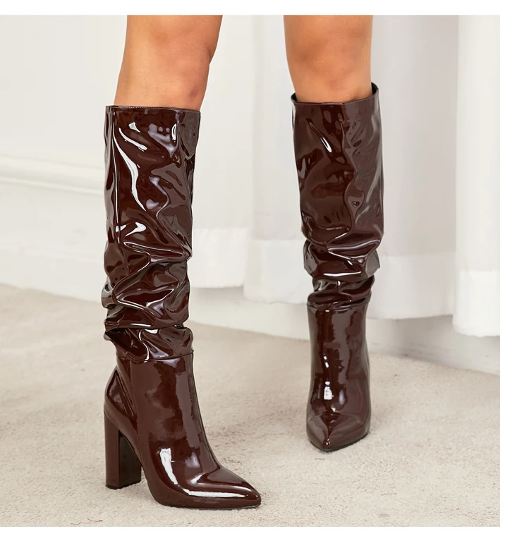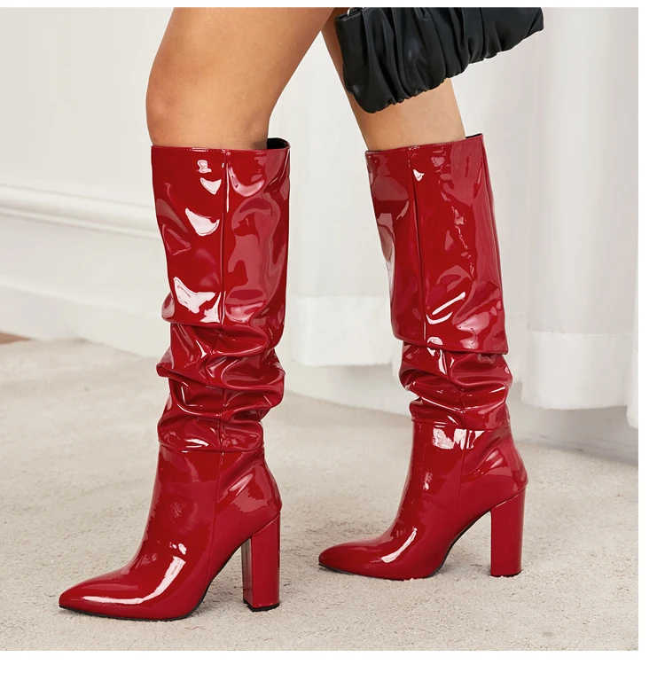 Leather Zipper Stivali Donna Chaussures Talon Bottes Femme 2023 Fashion Spike Heels Mid Calf Chunky Heel Women’s Boots