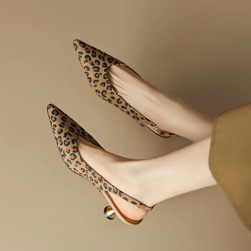 Elevate Your Style with the Leopard Print Suede Slingback High Heel Sandals