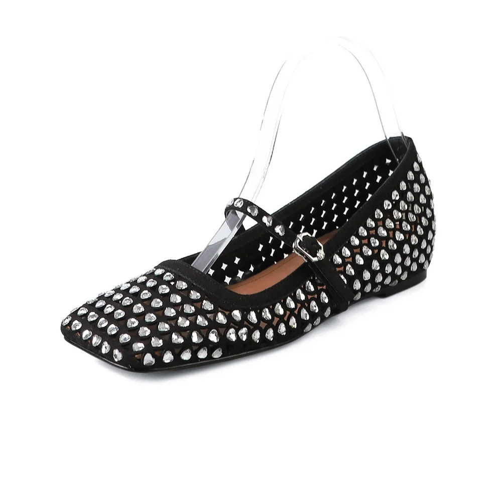 Luxury Classic Mary Jane Pumps with Rhinestones