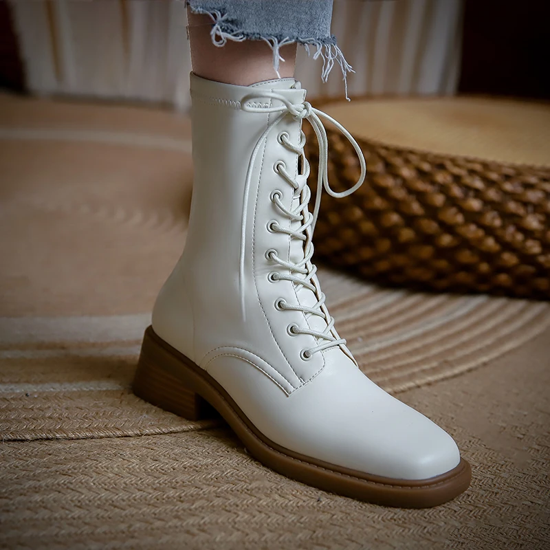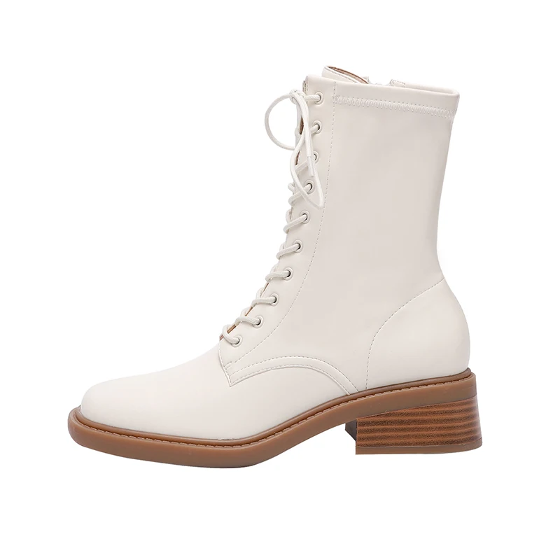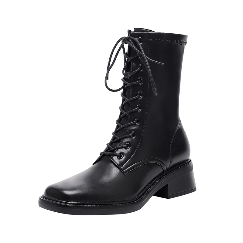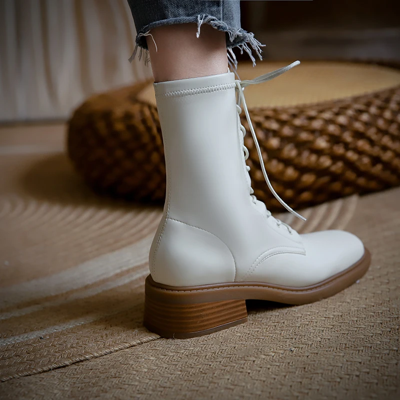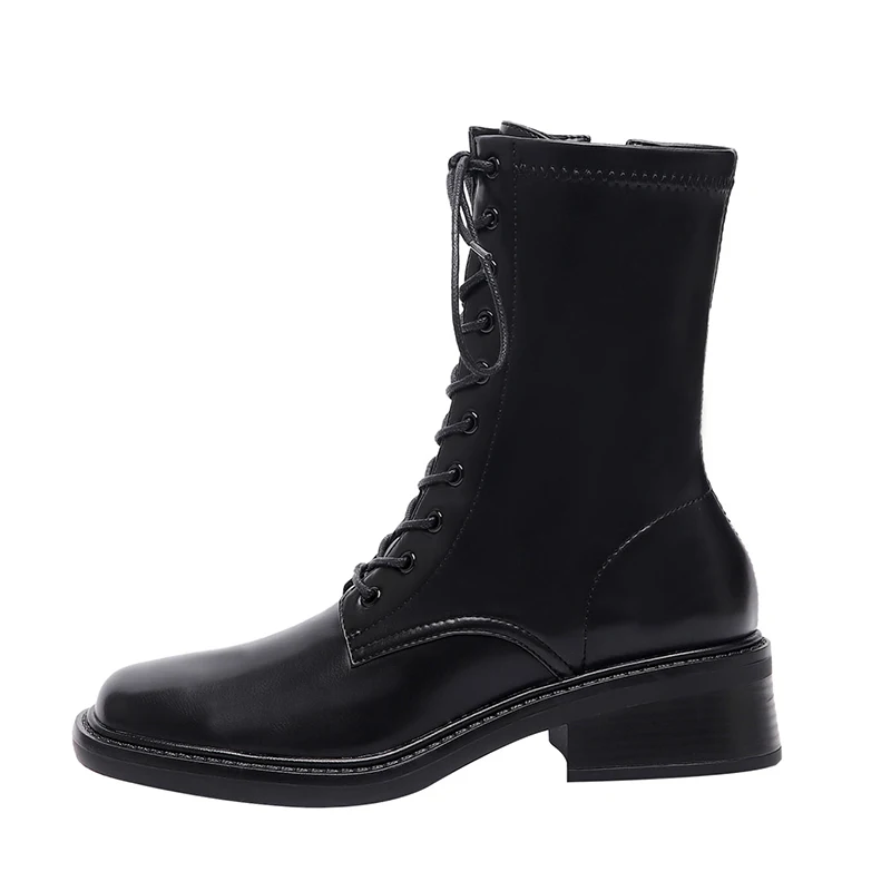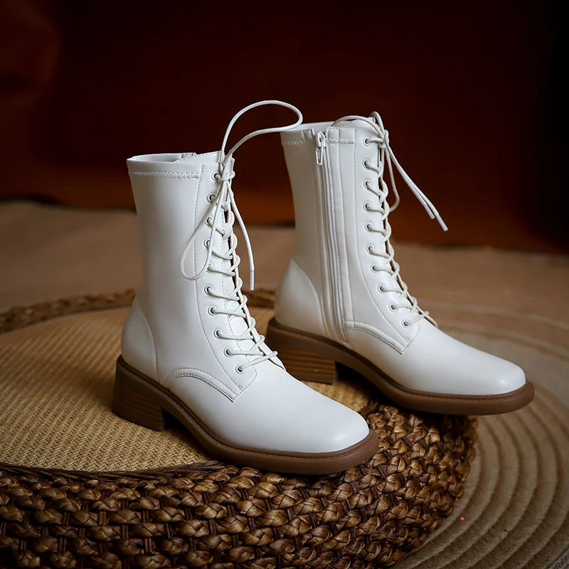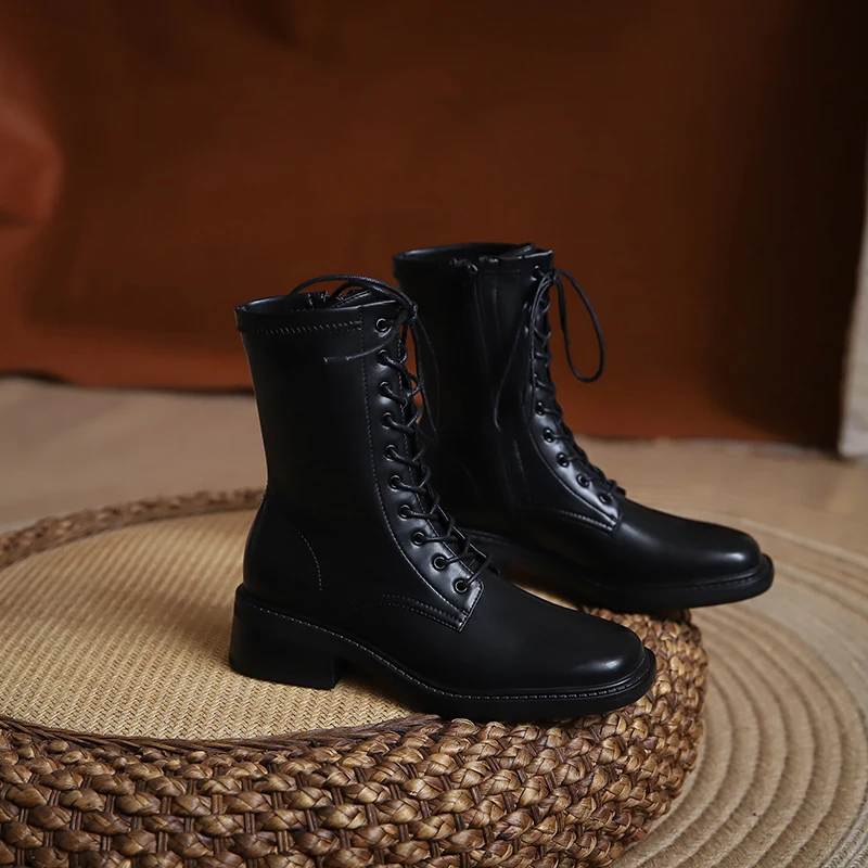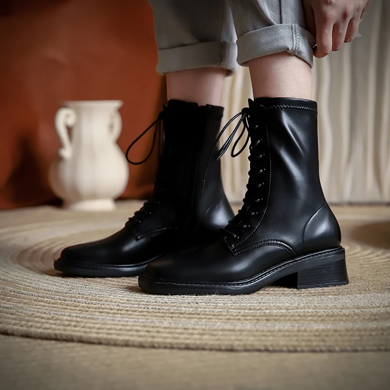 Discover the Elegance of Microfiber Lace Up Ankle Boots with Block Heels