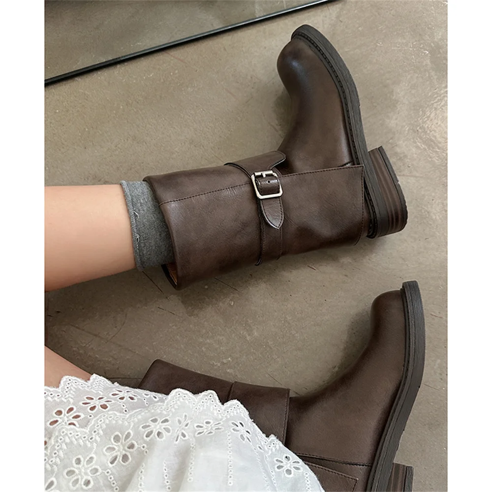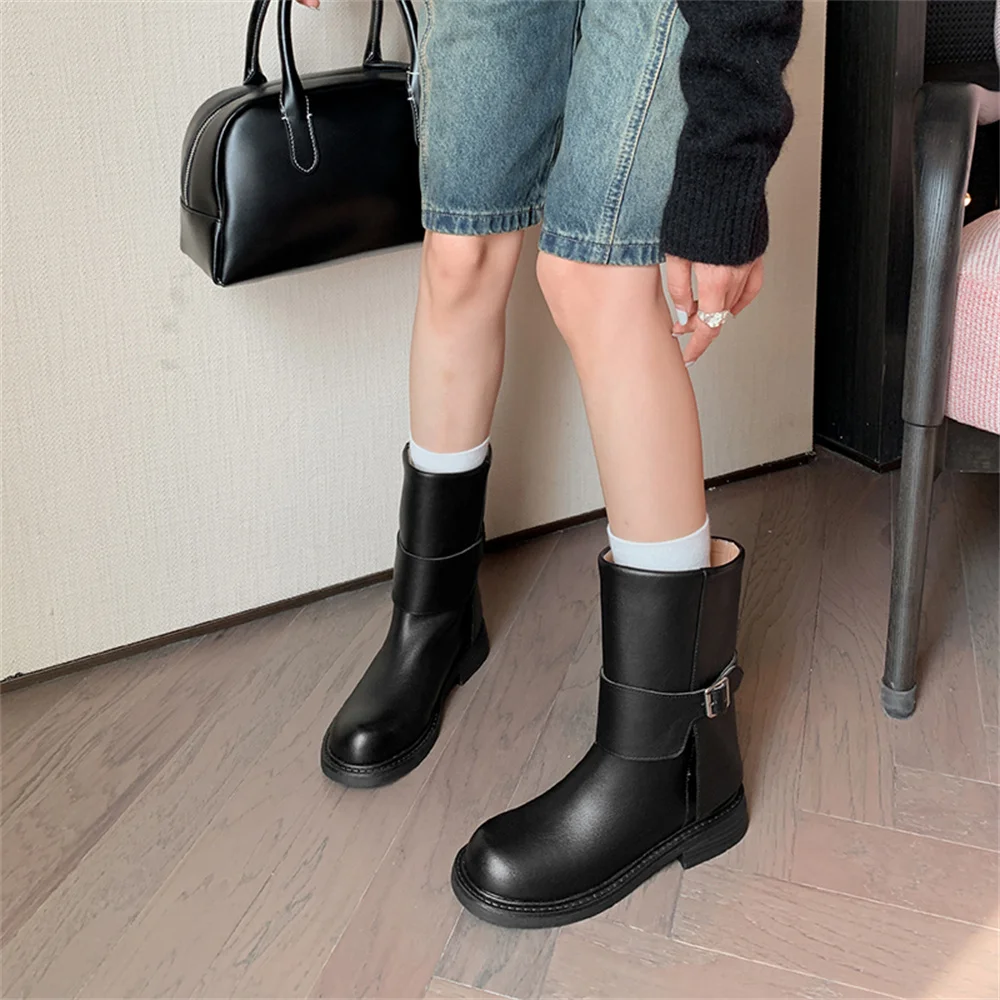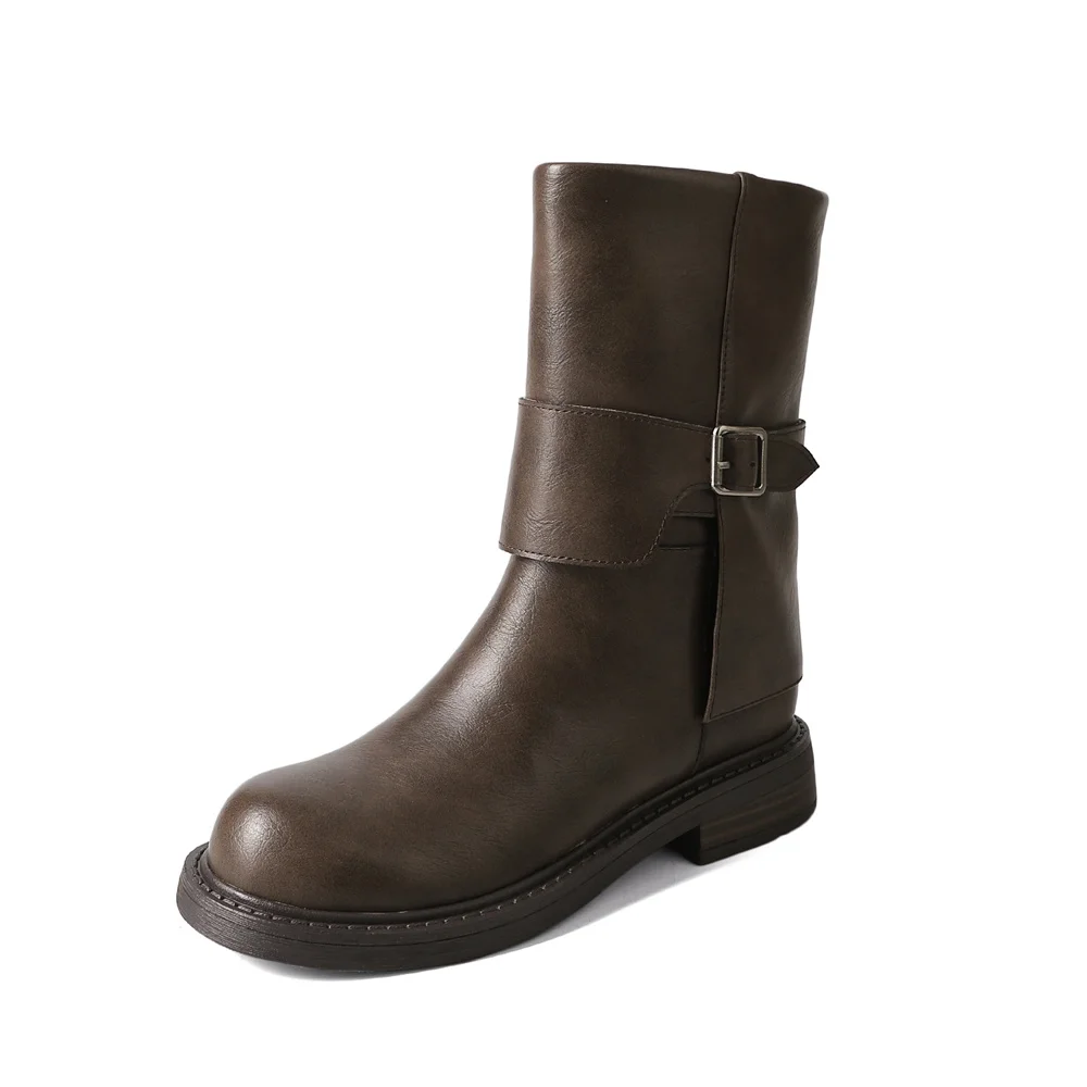 Discover the perfect blend of style and comfort with our Mid-Calf Thick Heels Motorcycle Boots. Designed for the modern woman, these boots are not just footwear; they are a statement. Crafted with high-quality materials and a chic design, they offer both functionality and elegance, making them your go-to choice for various occasions, from casual outings to office wear.