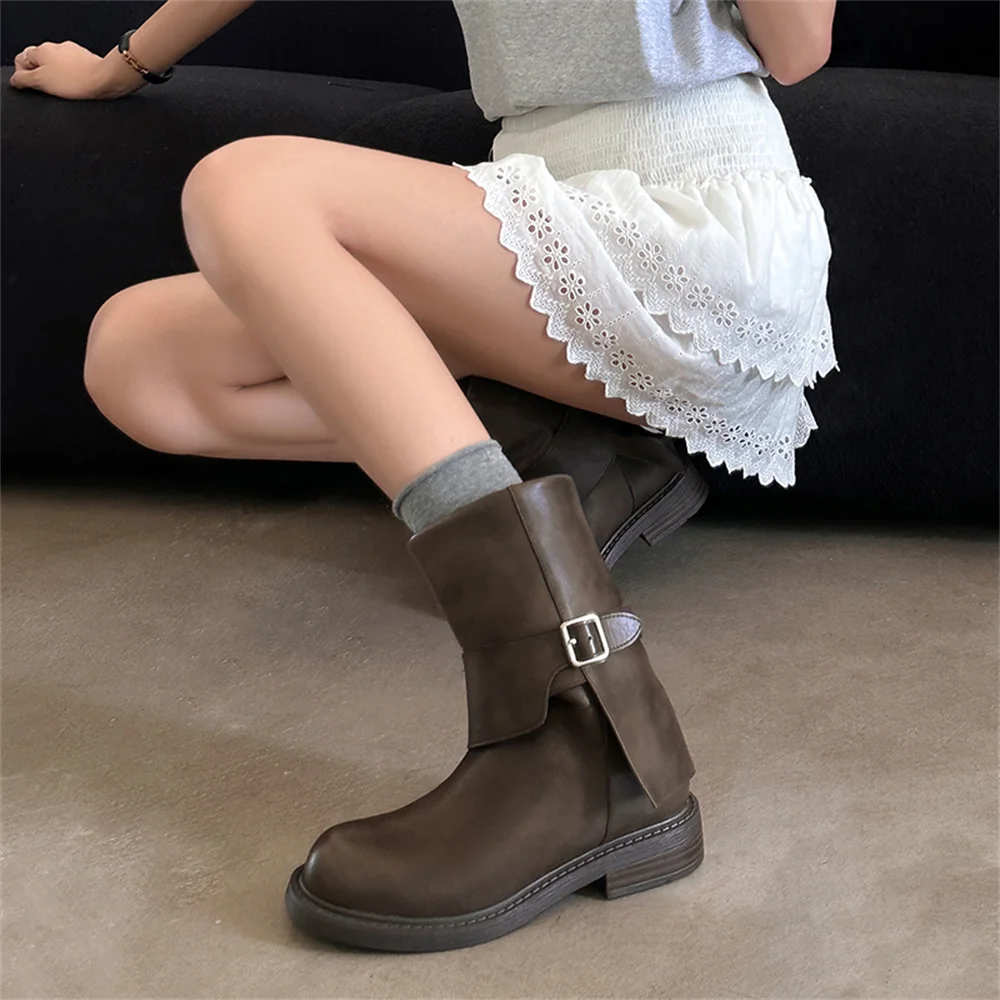- Comfortable Fit: With a mid-calf height and round toe shape, these boots provide ample space for your feet while ensuring comfort during all-day wear.