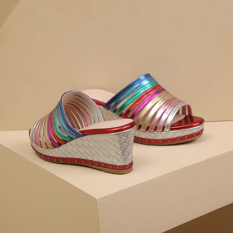 Mixed color wedge sandals summer high heels