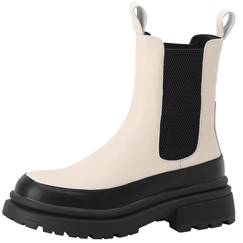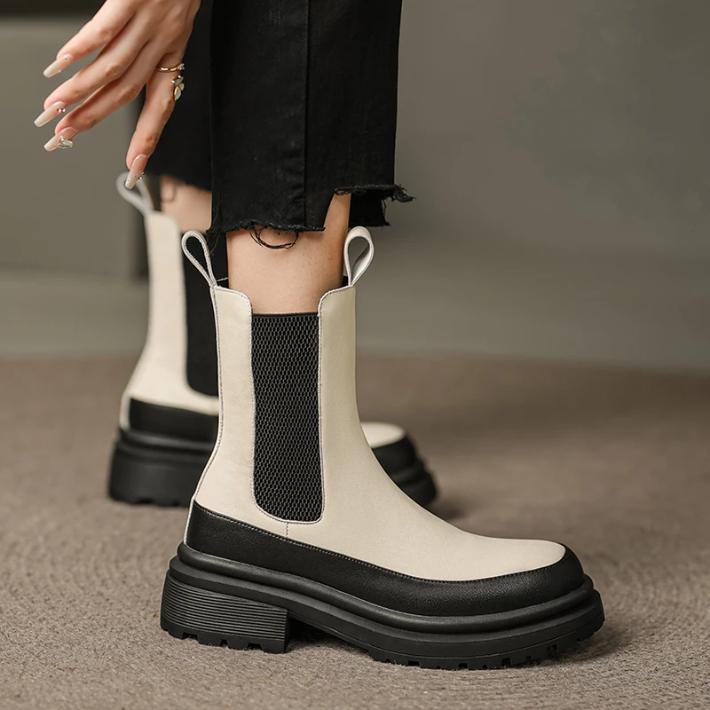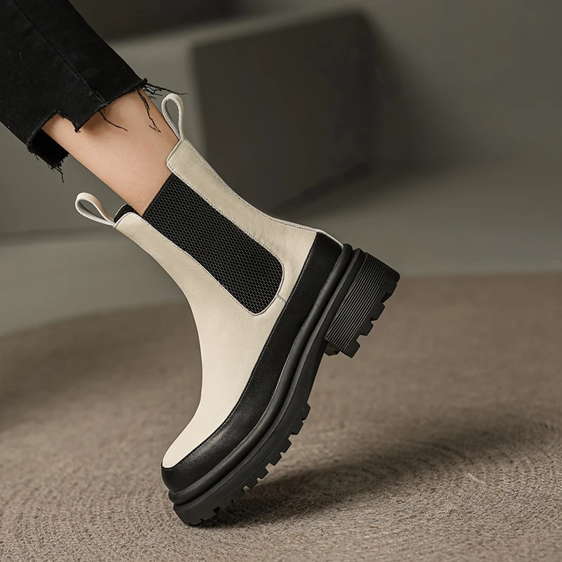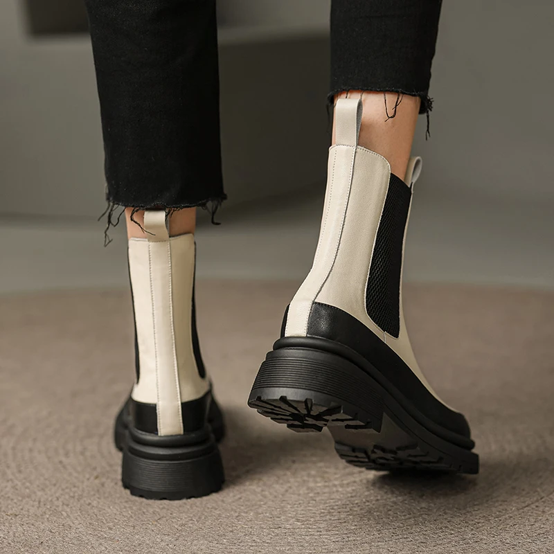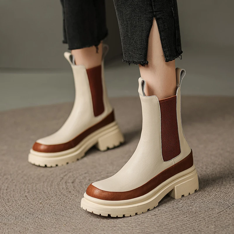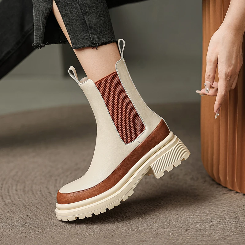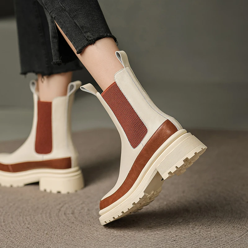 Mixed colors genuine leather chelsea boots slip-on ankle boots