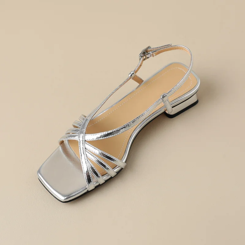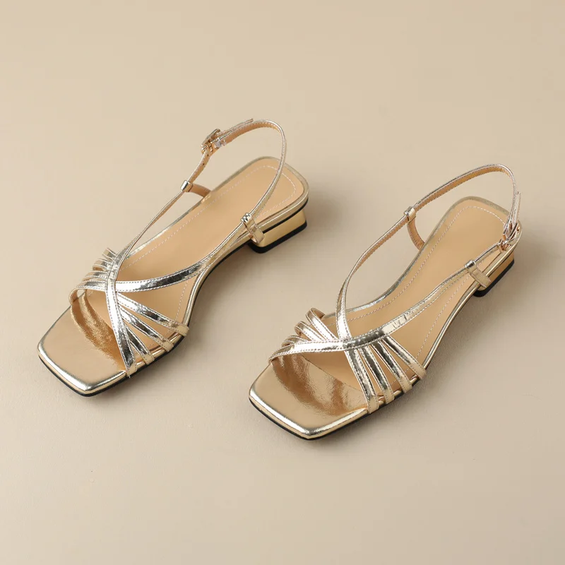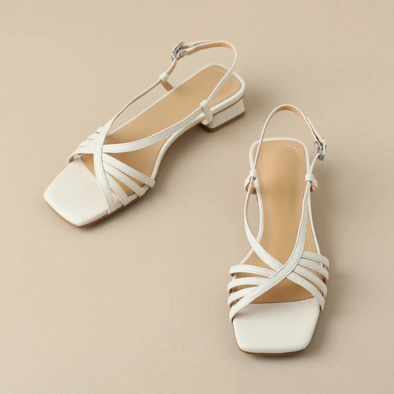 Discover the Elegance of Narrow Band Thick Heels Leather Sandals