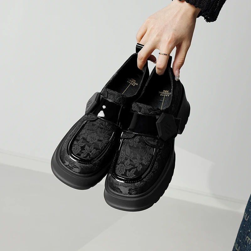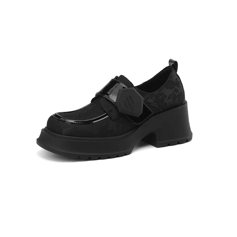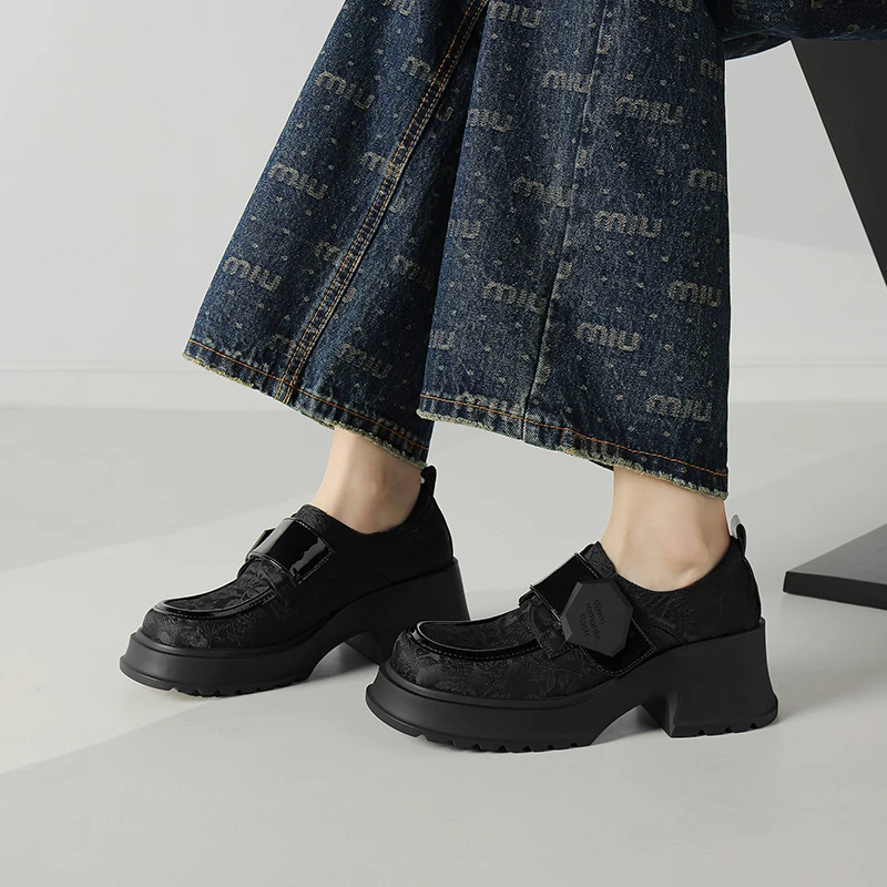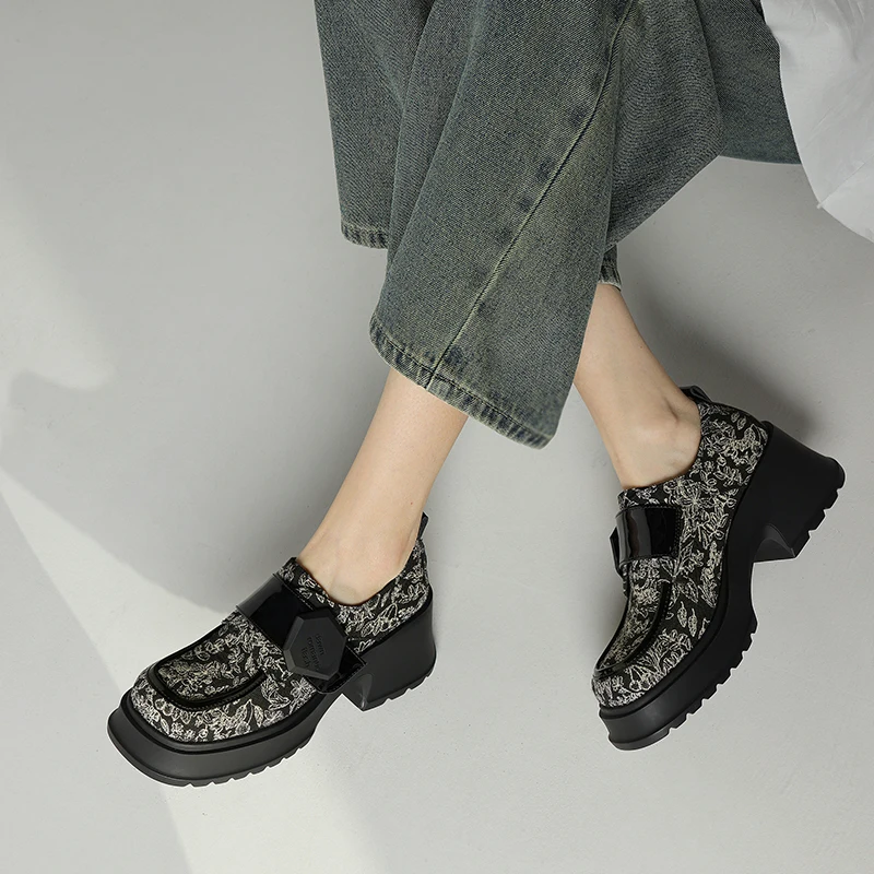 Natural leather printed buckle loafers with thick sole