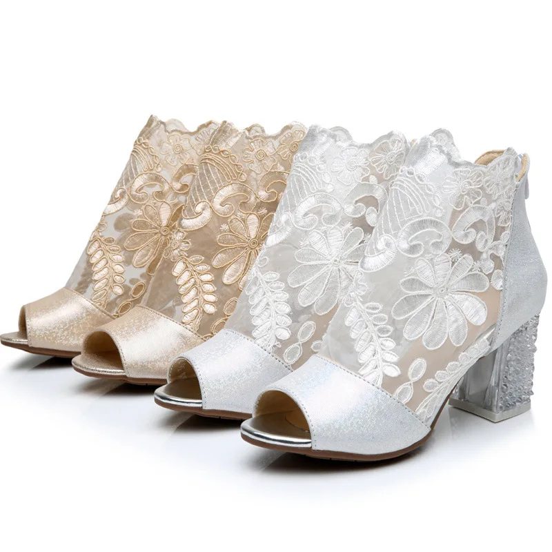 Open toe lace leather summer sandals