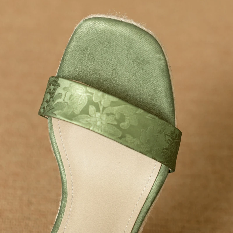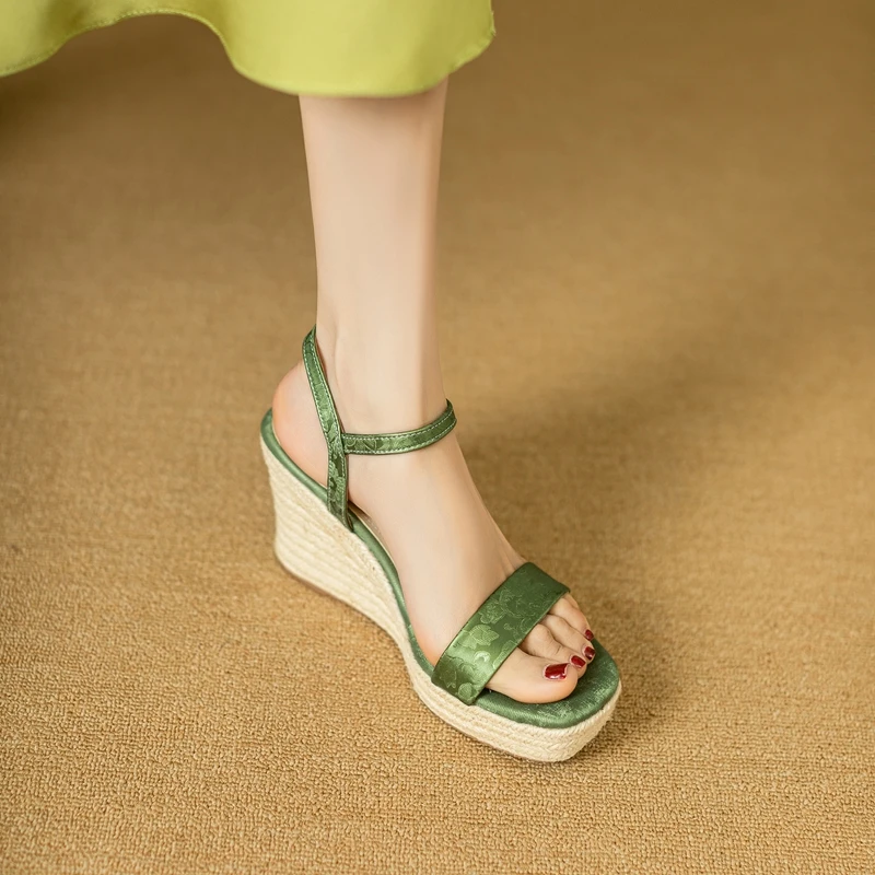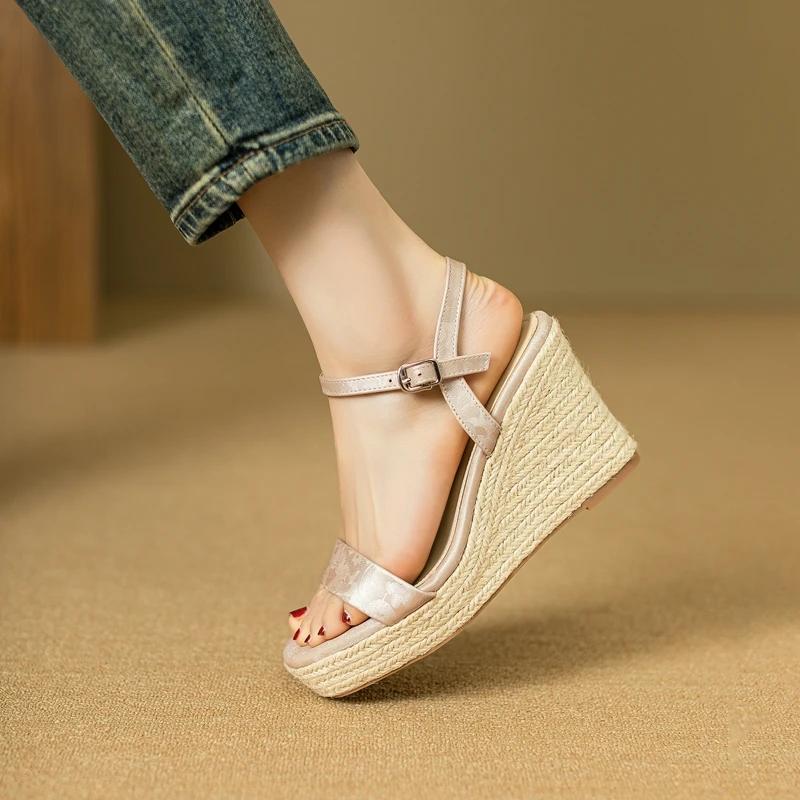 Open Toe Leather Slope Heel Sandals