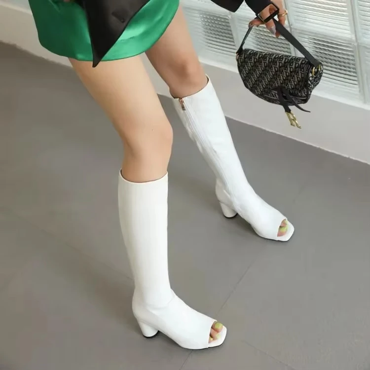 Step Out in Style with Sgesvier Patent Leather Knee High Peep Toe Boots