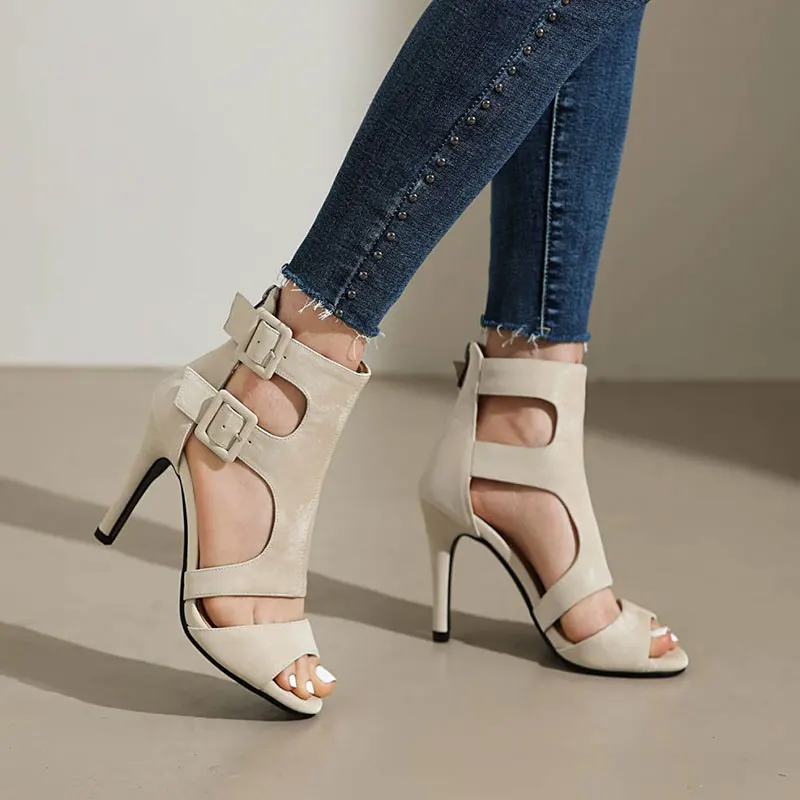 Peep toe high heel ankle boots gladiator sandals