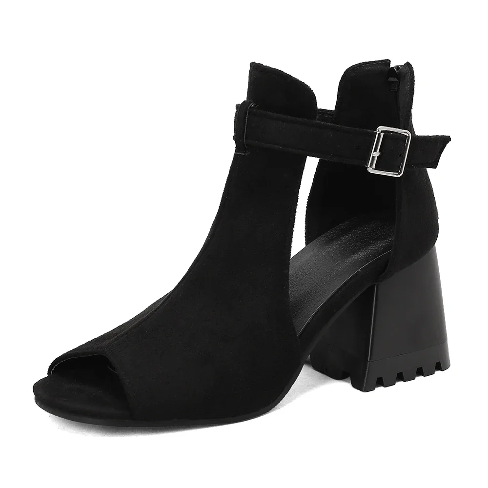 Peep toe high heels ankle boots sandals