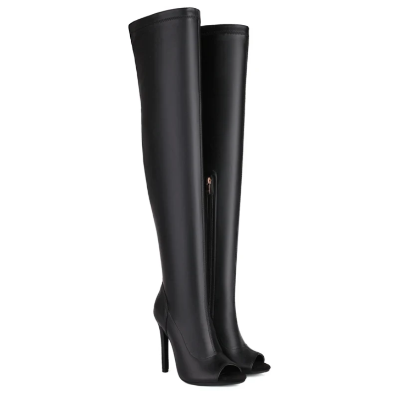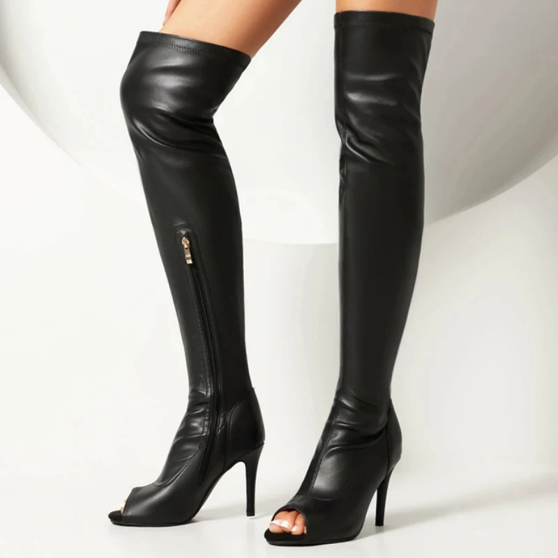 Peep toe over the knee high boots with heels