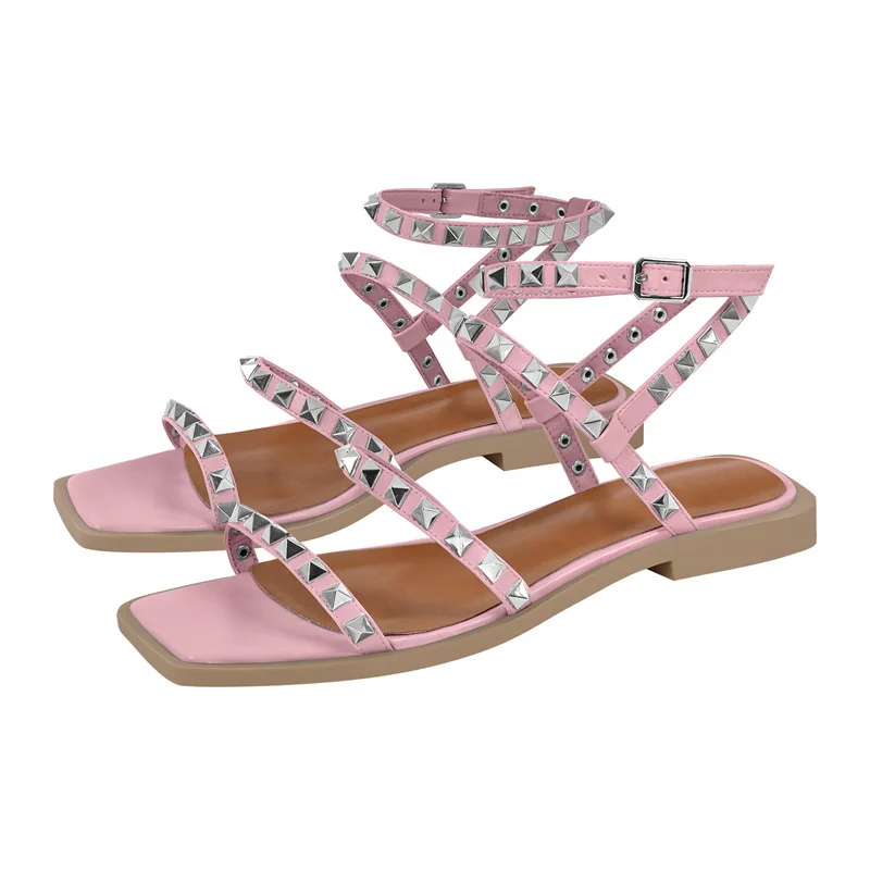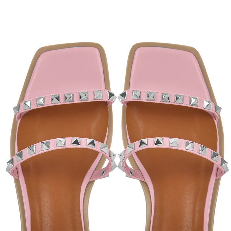 Introducing the Stylish Pink Square Toe Rivet Flat Sandals