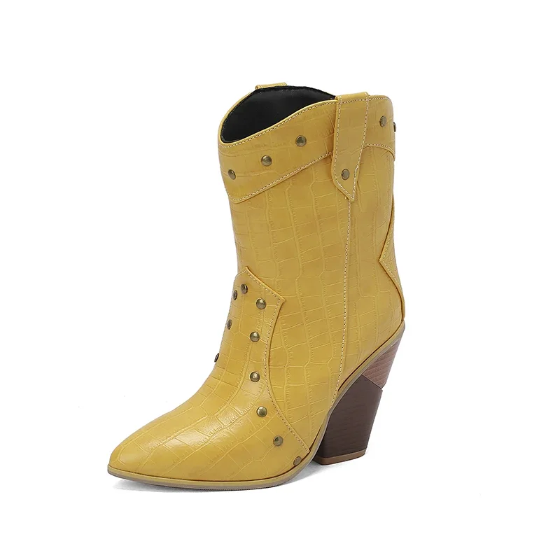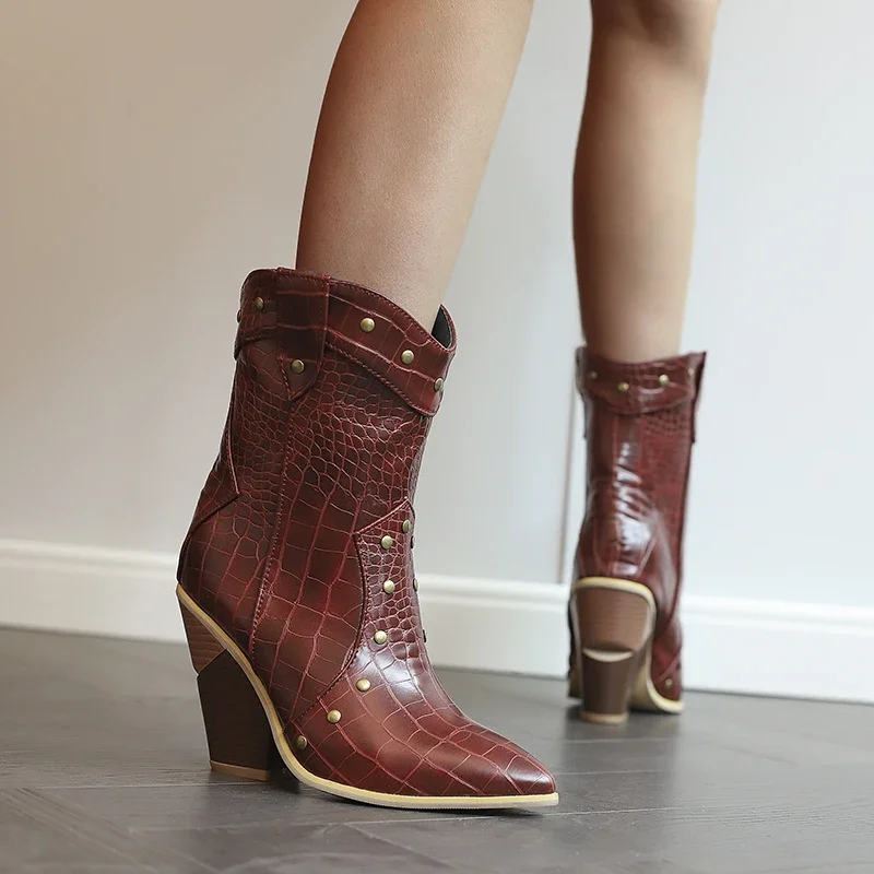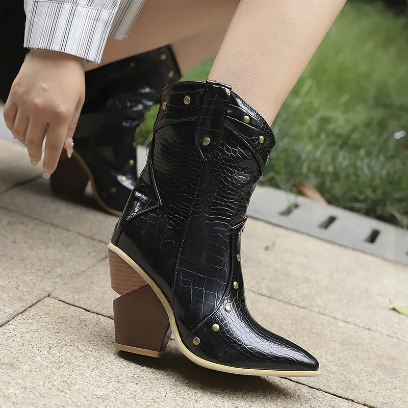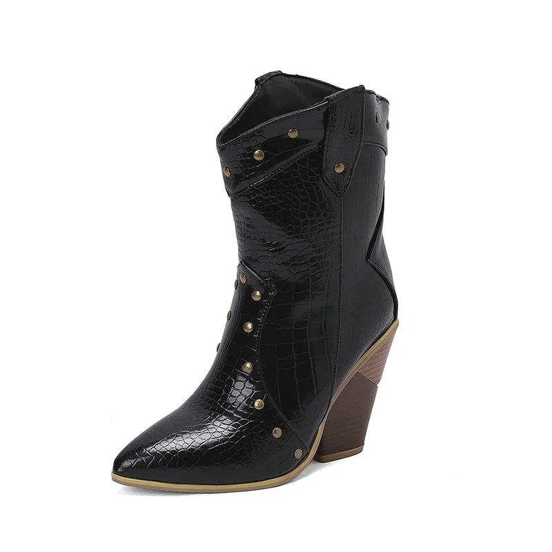 Discover the Elegance of Our Plus Size Pointed Toe Ankle Boots with Rivets