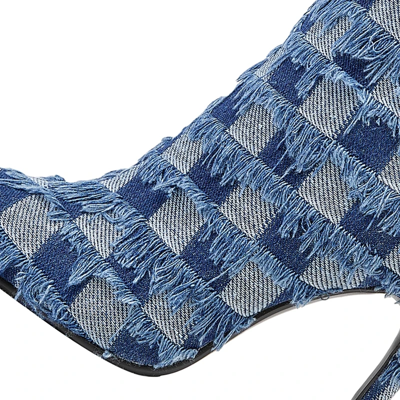 Step into style and sophistication with our Pointed High Heel Denim Plaid Short Boots. Perfect for the fashion-forward individual, these boots combine the rugged charm of denim with a chic plaid pattern, making them a versatile addition to your wardrobe. Designed for both comfort and elegance, they are the ideal footwear for any occasion—from casual outings to more formal events.