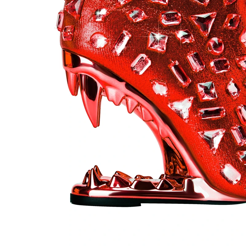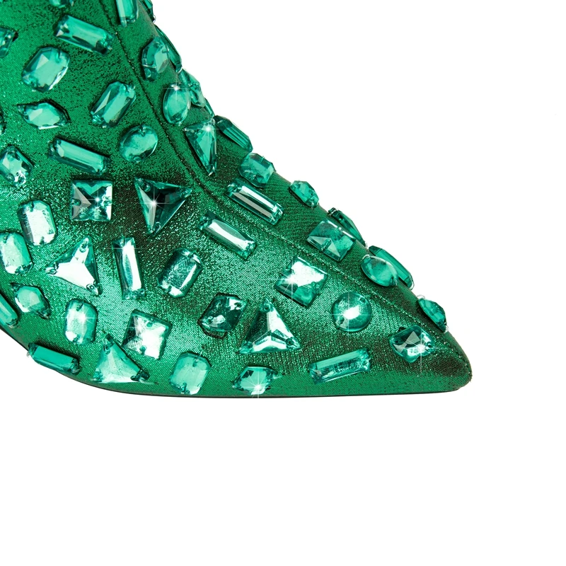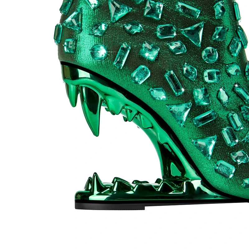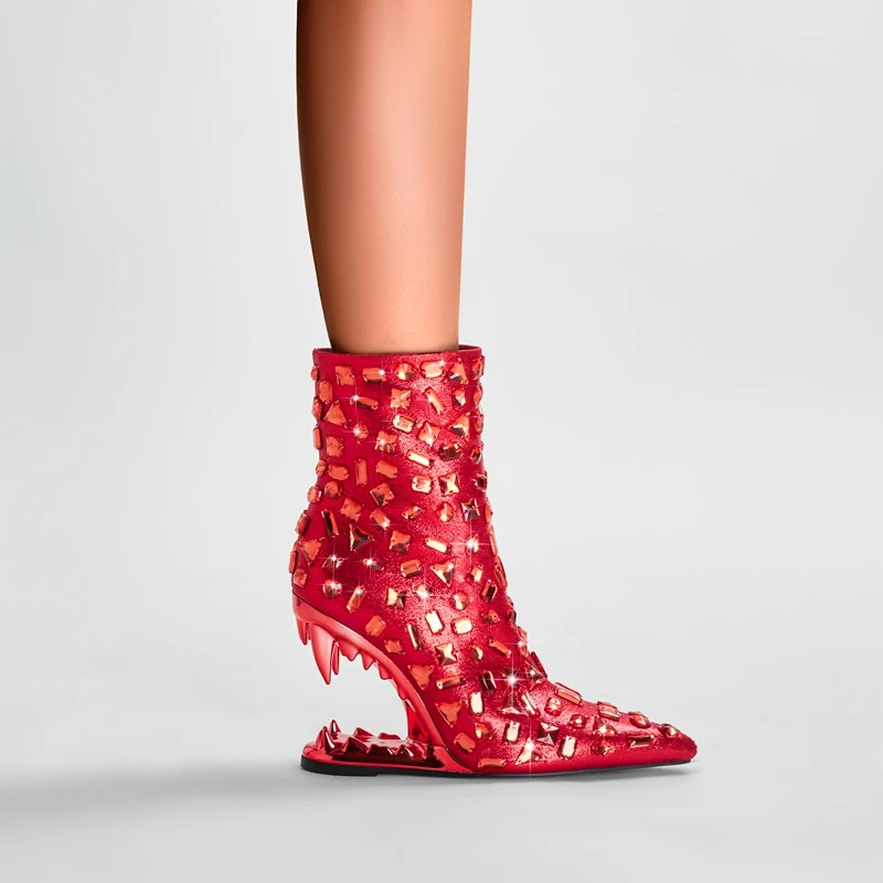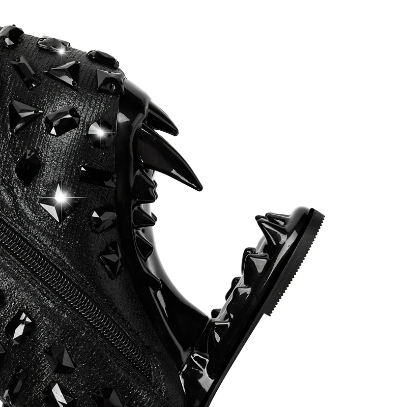 Discover the Alluring Pointed Rhinestone Wolf Teeth High Heel Boots