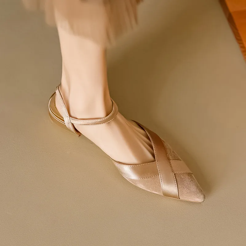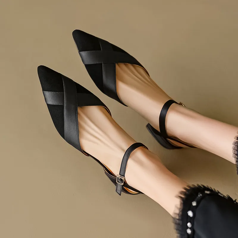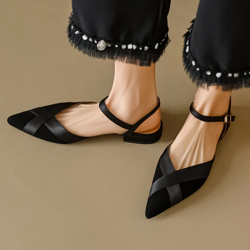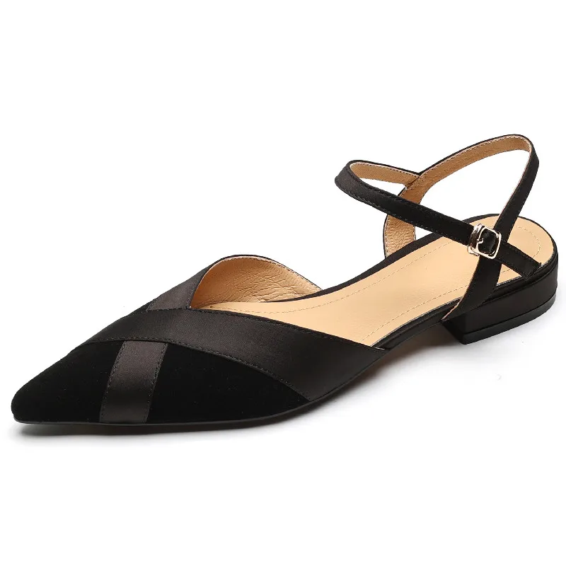 Pointed toe low heels suede sandals for office and casual wear