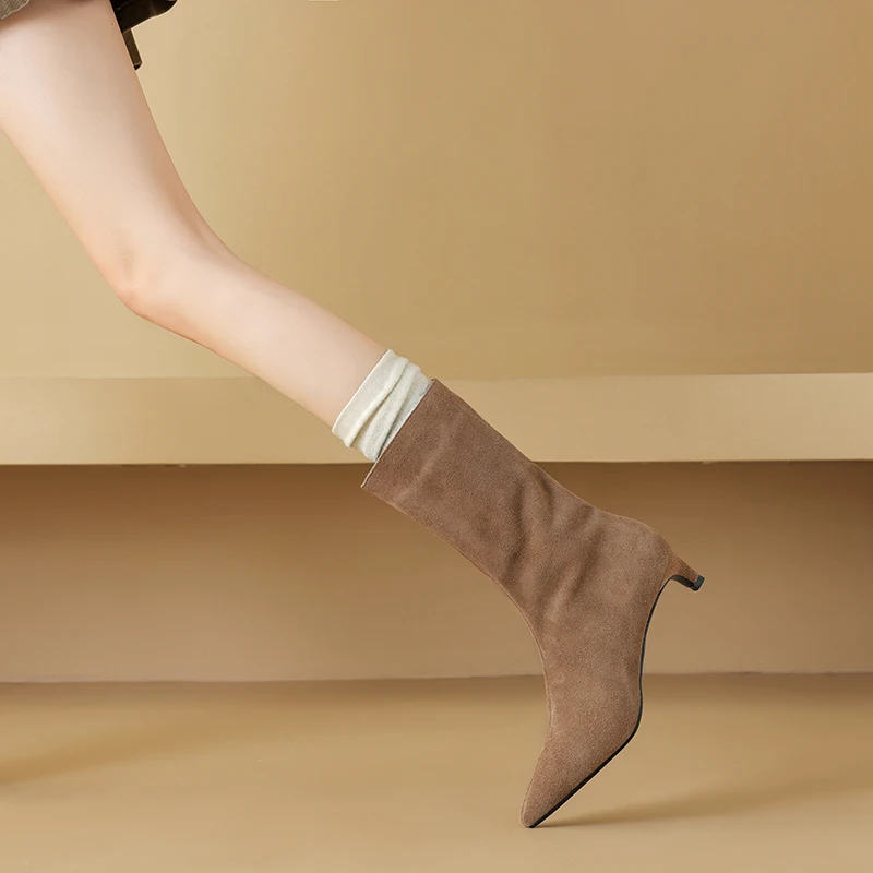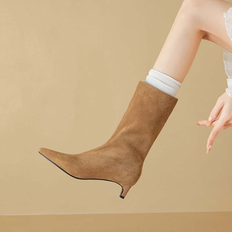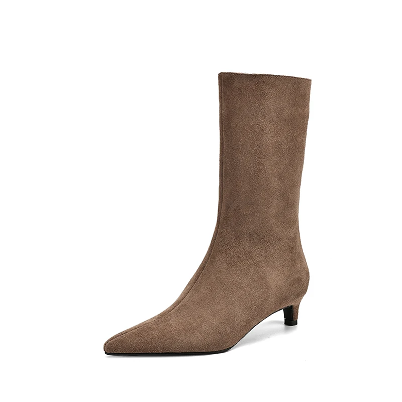 Discover the Elegance of Pointed Toe Mid-Calf Kitten Heel Boots