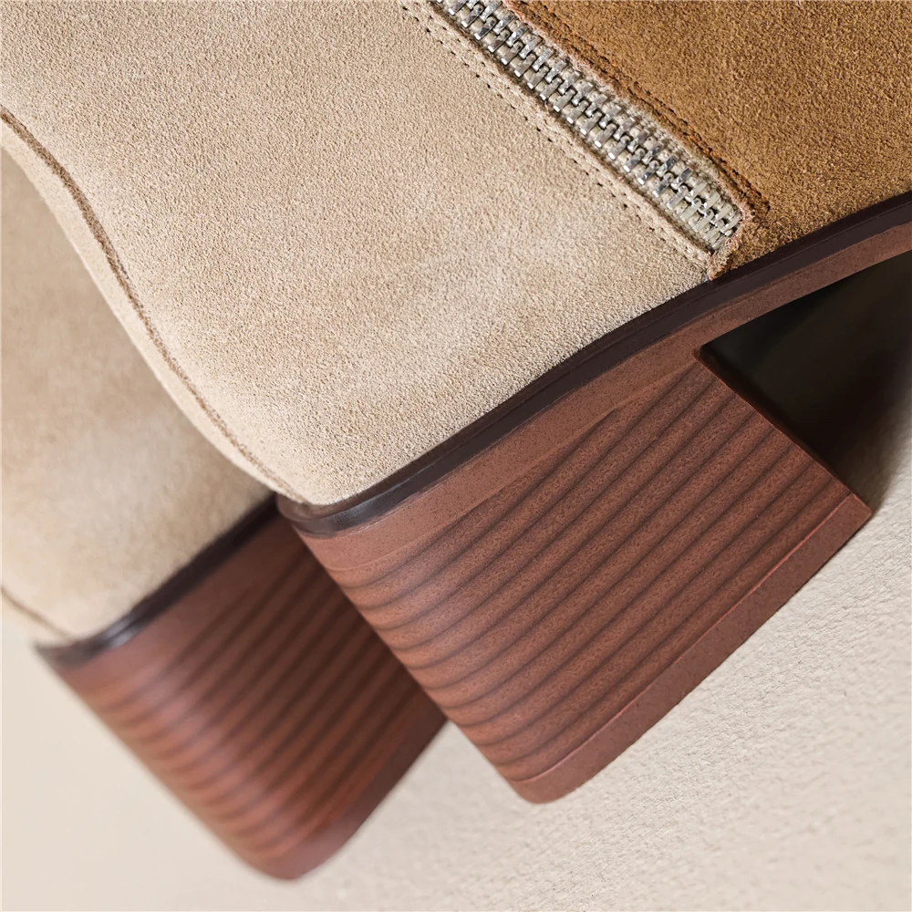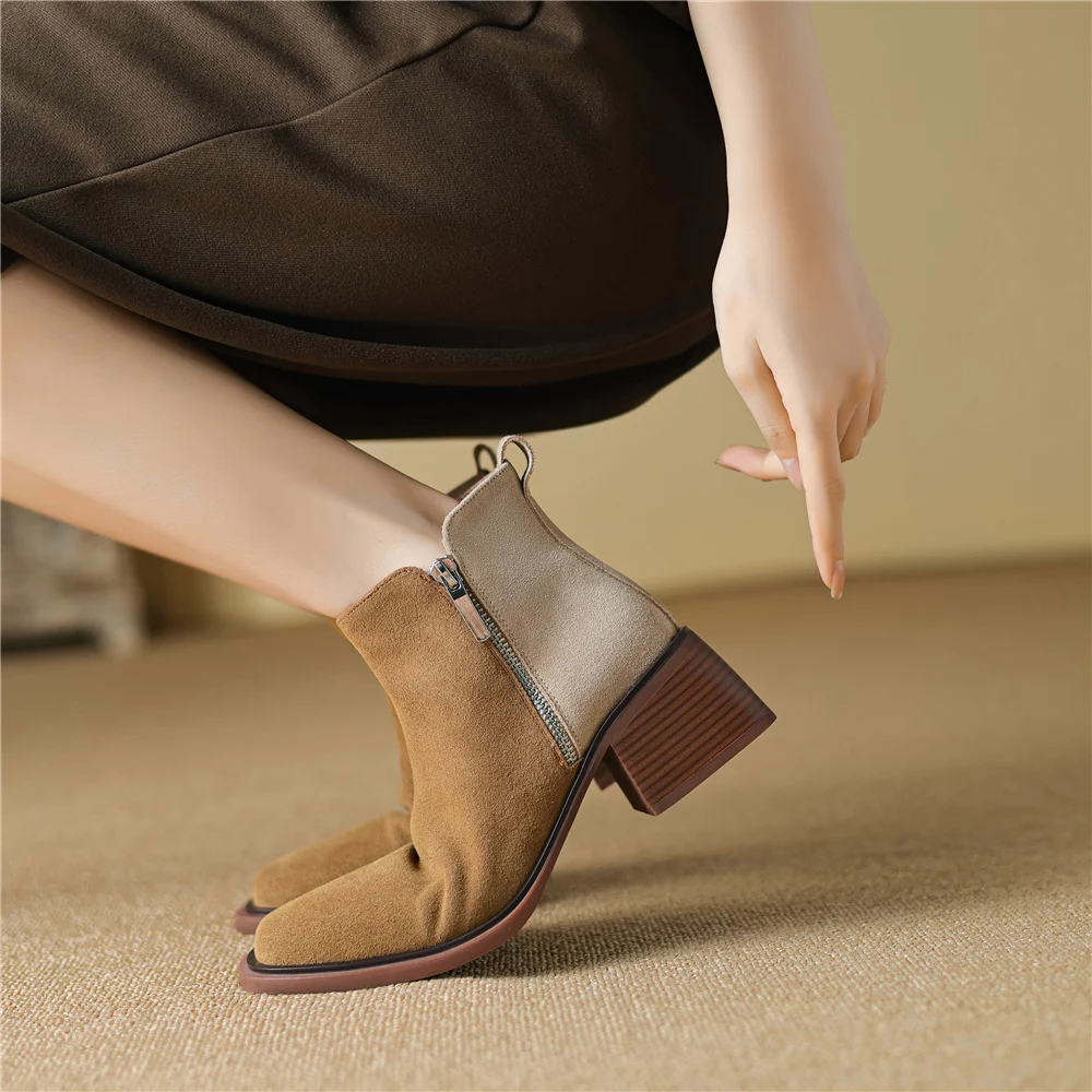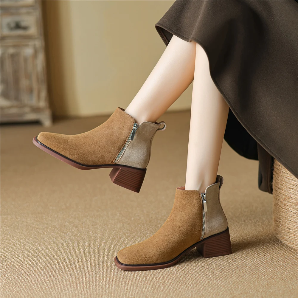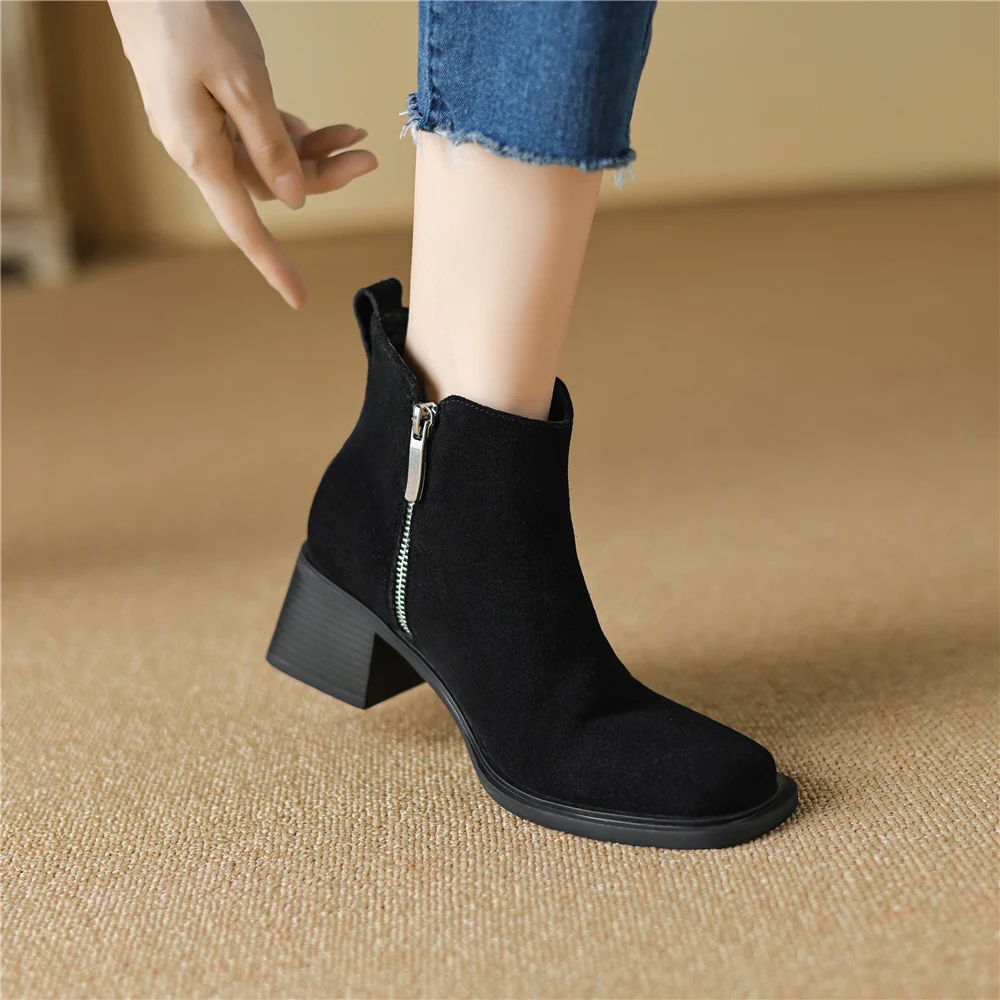 Elevate your footwear collection with our stunning Retro Ankle Boots featuring a chic side zipper and robust thick heels. Designed for the modern trendsetter, these boots blend comfort and vintage flair, making them the perfect addition to your winter wardrobe. Crafted from high-quality cow suede and lined with soft velvet, they ensure your feet stay cozy while turning heads wherever you go.