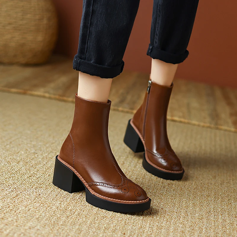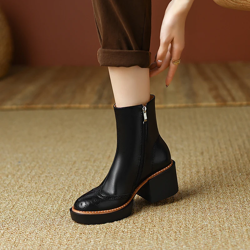 Retro ankle boots with thick heels and side zipper